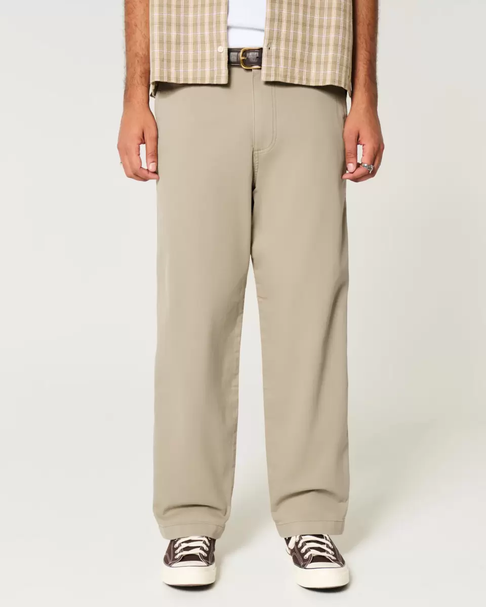 Wygodne spodnie z diagonalu z luźnymi nogawkami. Kieszenie. Importowane.