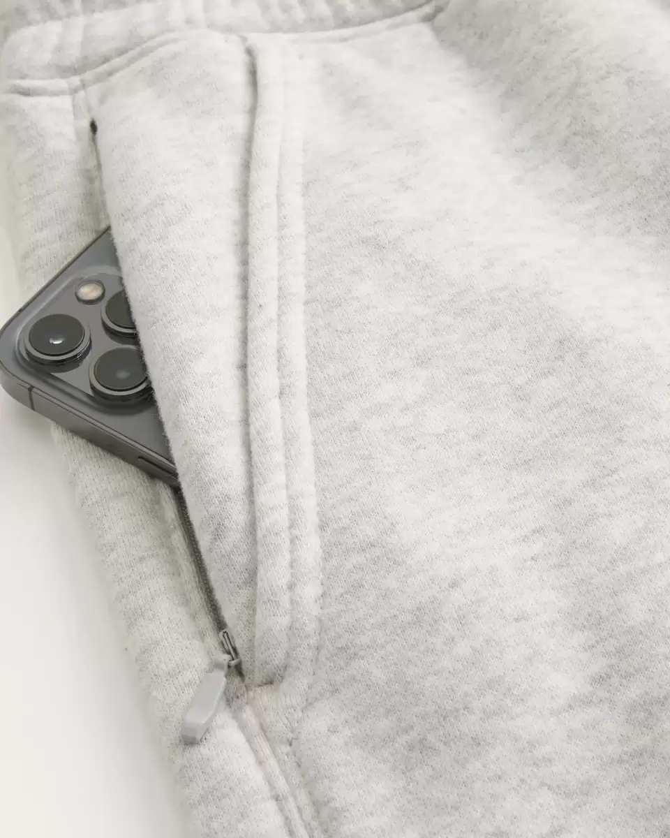 Supermiękkie, polarowe spodnie dresowe z luźnymi nogawkami, ściągaczem w pasie i ściągaczami u dołu. Haftowane logo na lewej nogawce, kieszenie, prawa kieszeń zapinana na zamek. Importowane.