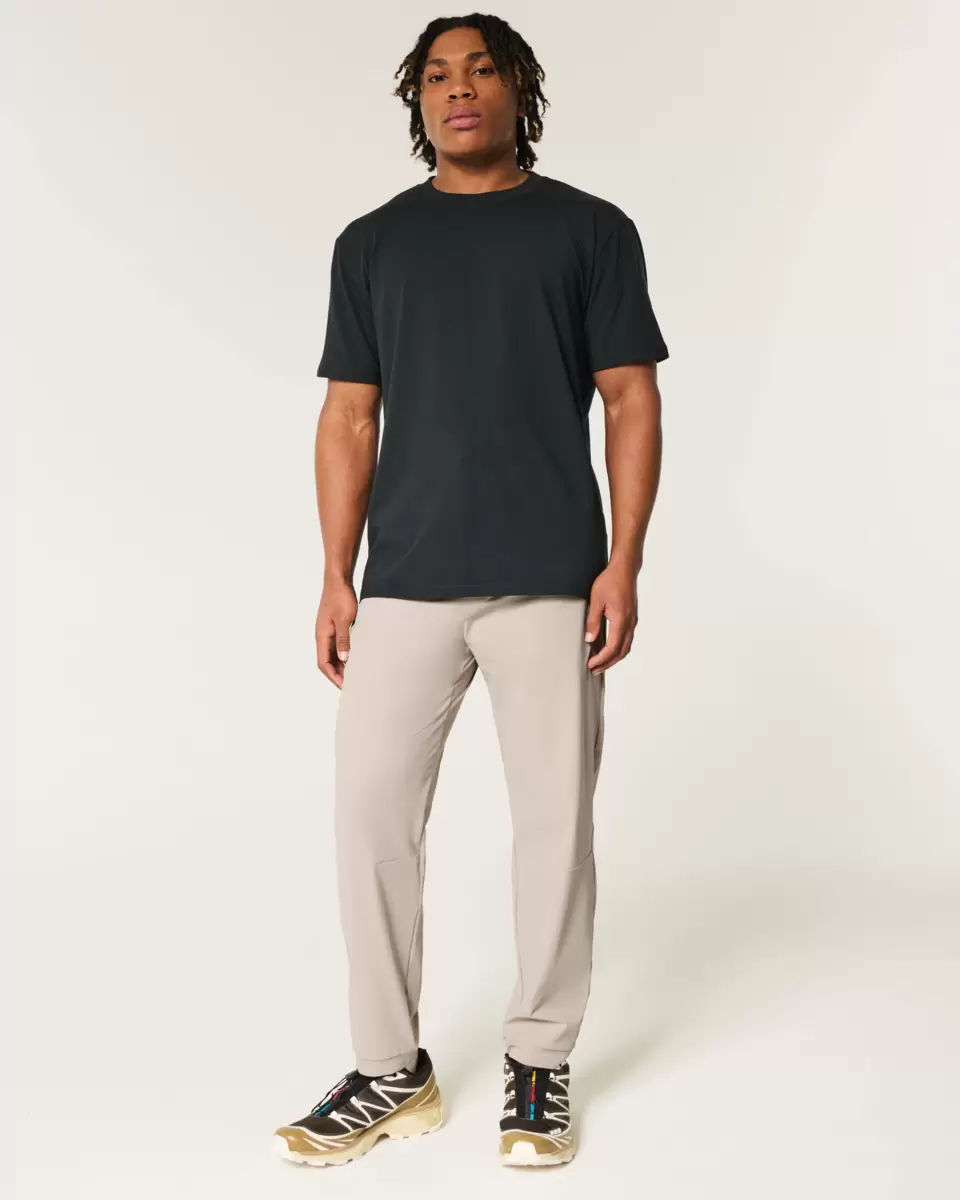 Ultrawygodne spodnie z elastycznym materiałem, z luźnymi nogawkami zwężającymi się ku węższemu mankietowi. Ściągacz w pasie, kieszenie, prawa kieszeń na zamek błyskawiczny. Produkt importowany.