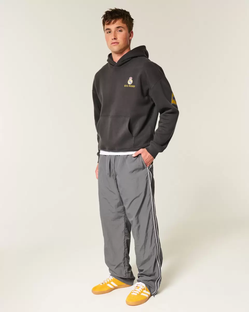 Super wygodne spodnie dresowe ze sznurkiem w pasie i bocznymi lamówkami. Kieszenie, nogawki rozszerzane (po rozpięciu) i luźne (po zapięciu). Produkt importowany.