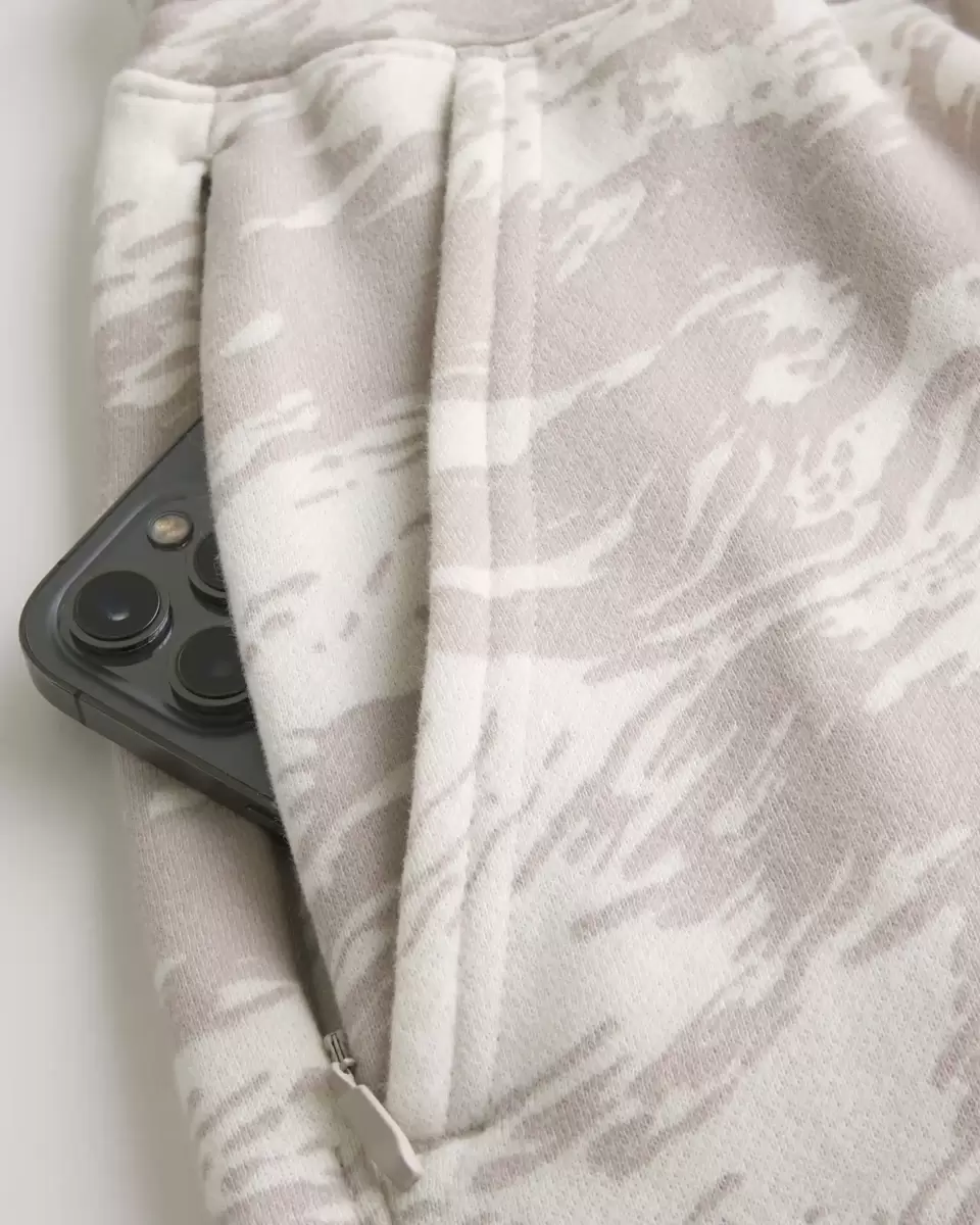Supermiękkie, polarowe szorty. Ściągacz w pasie, kieszenie, prawa kieszeń zapinana na zamek, luźny krój, wzór kamuflażowy na całej powierzchni. Sięgają za kolano. Importowane.