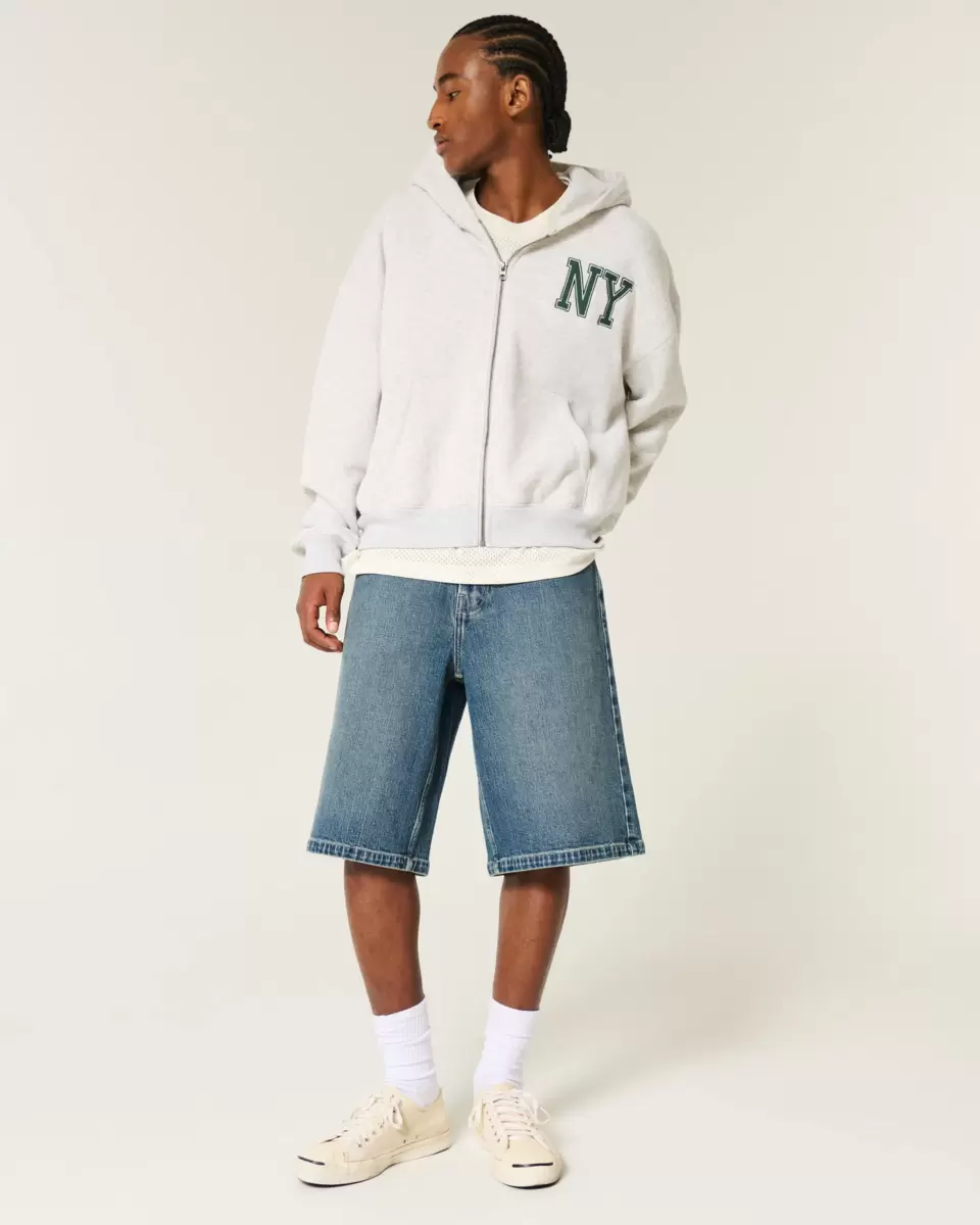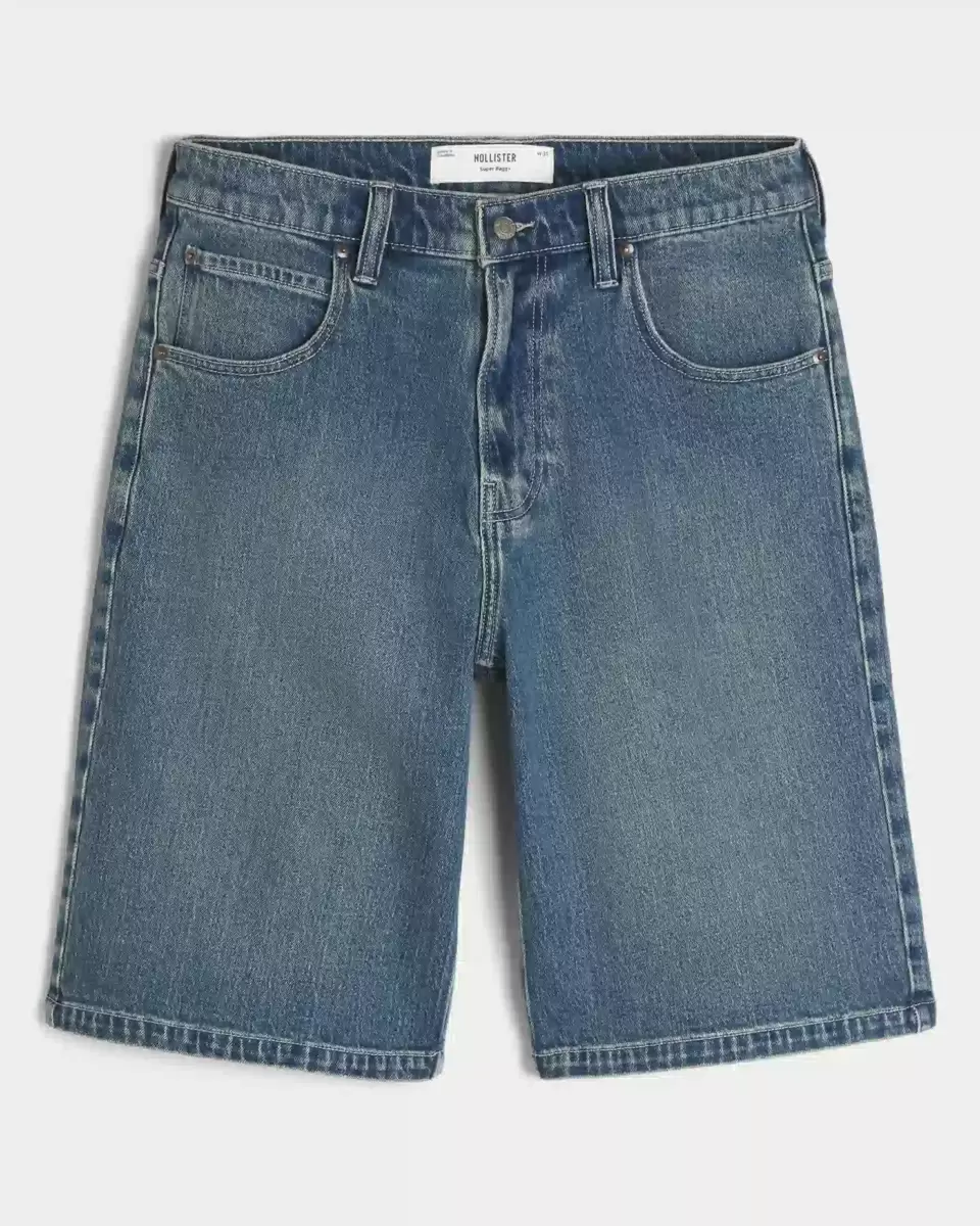 Wygodne szorty jeansowe z bardzo luźnymi nogawkami i długością za kolano. Ciemny kolor z przetarciami. Importowane.