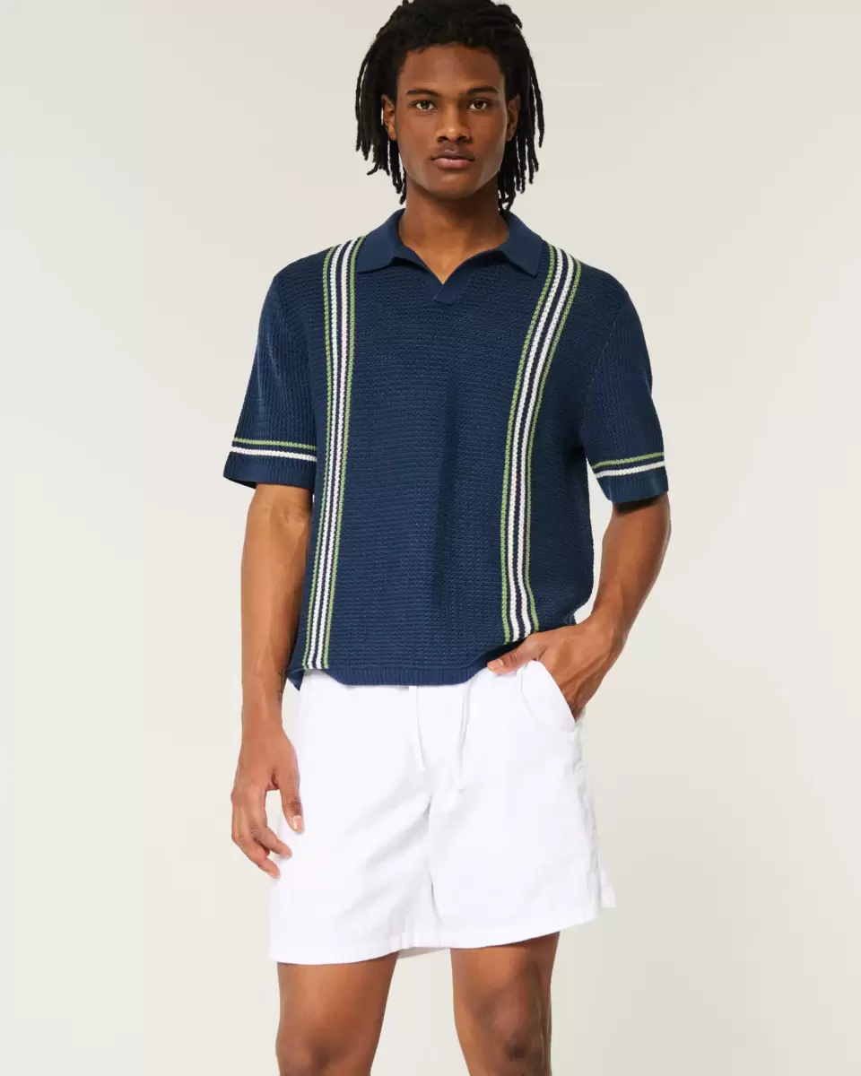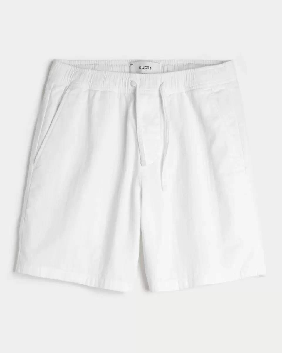 Ultrawygodne szorty z tkaniny seersucker, ze ściągaczem w pasie i 20-centymetrowym szwem wewnętrznym. Kieszenie. Sięgają nad kolano. Produkt importowany.