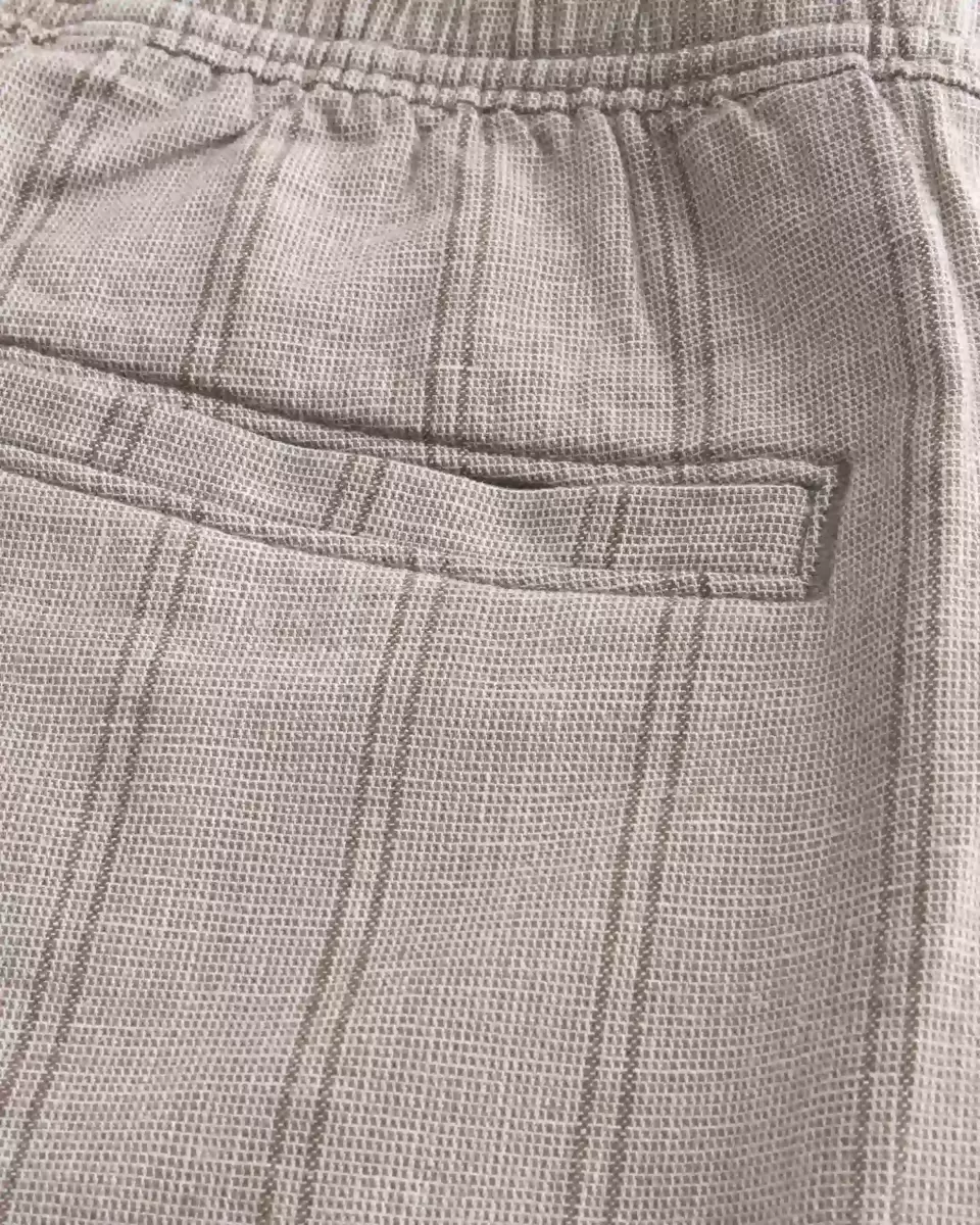 Ultrawygodne spodenki z miękkiej mieszanki bawełny i lnu. Sznurek w pasie, kieszenie, 20 cm długości nogawki wewnętrznej. Sięga nad kolano. Produkt importowany.