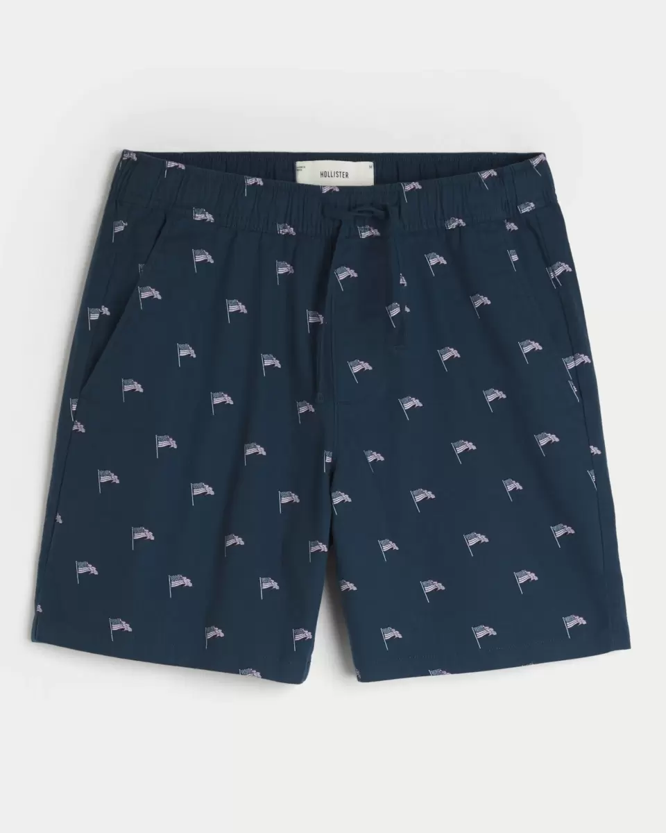 Ultrawygodne szorty ze ściągaczem w pasie i wzorem z amerykańską flagą na całej powierzchni. Kieszenie, sięgają nad kolano. Produkt importowany.