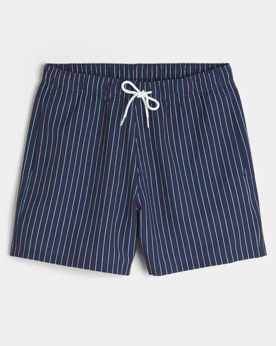 Krótsze kąpielówki sięgające do połowy uda. Wykonane z wygodnego, rozciągliwego w czterech kierunkach materiału seersucker i mają 15-centymetrowy (6 cali) wewnętrzny szew. Kieszenie z przodu, podszewka z siateczki. Importowane. Importowane.