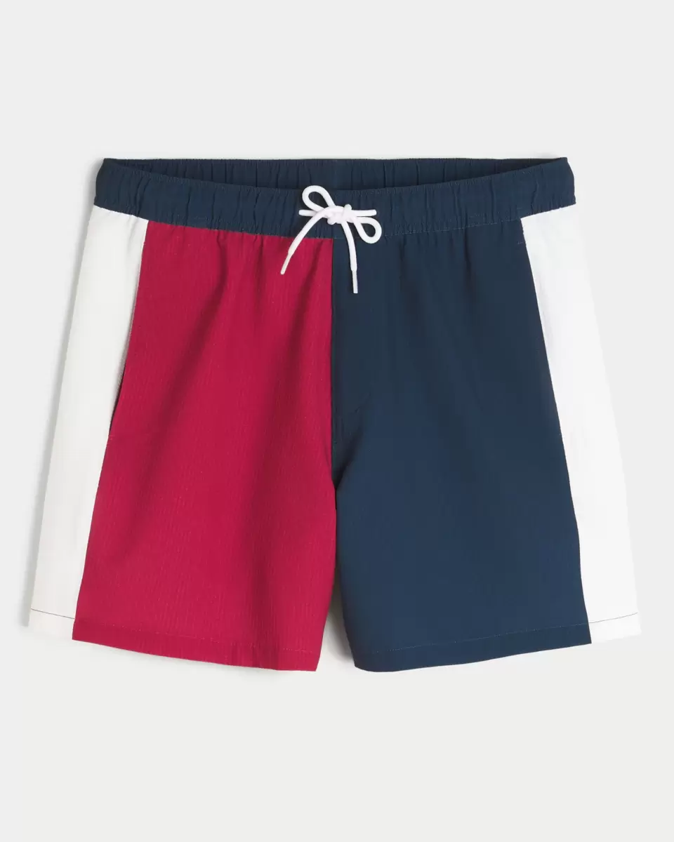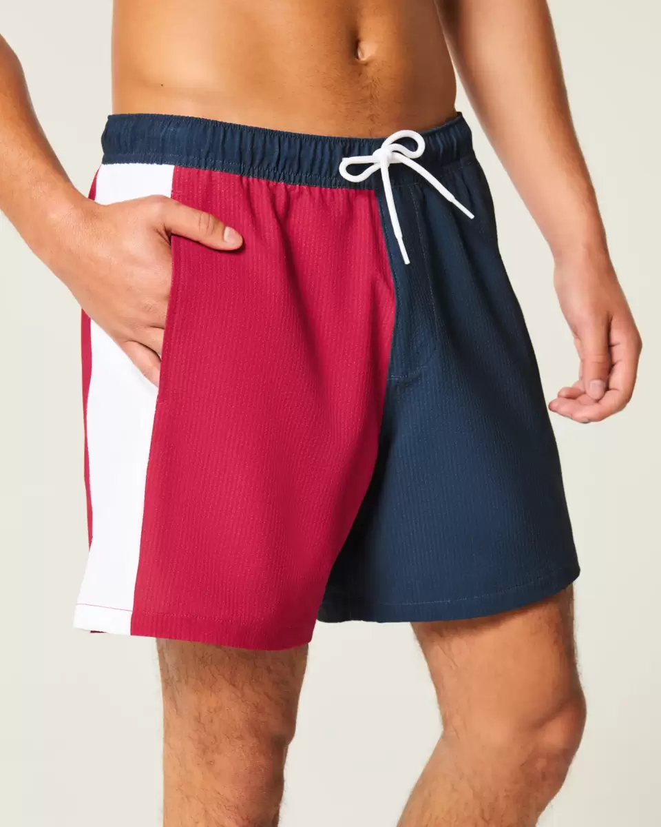 Krótsze kąpielówki sięgające do połowy uda. Wykonane z wygodnego, rozciągliwego w 4 kierunkach materiału seersucker i mają 15-centymetrowy (6-calowy) szew wewnętrzny. Kieszenie z przodu, podszewka z siateczki. Produkt importowany.