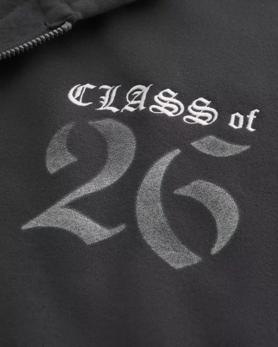 Supermiękka bluza z kapturem z polaru z nadrukiem Class of 26 na lewej piersi i wyrazistą grafiką 26 z tyłu. Zapinana na suwak, kieszenie z przodu, długie rękawy, kaptur. Luźny krój. Importowane.