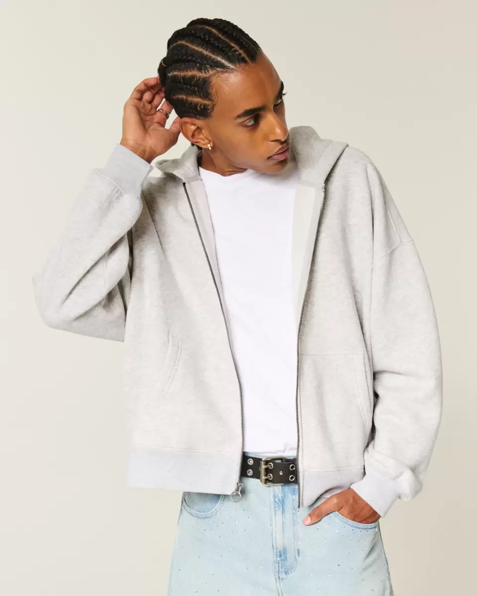Supermiękka bluza z kapturem z długimi rękawami, kieszeniami z przodu i zapięciem na suwak w naszym nowym kroju Rectangle. Produkt importowany.
