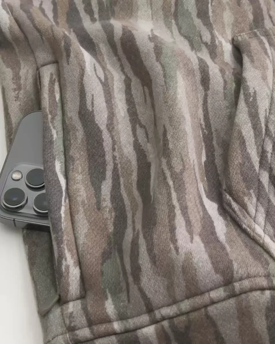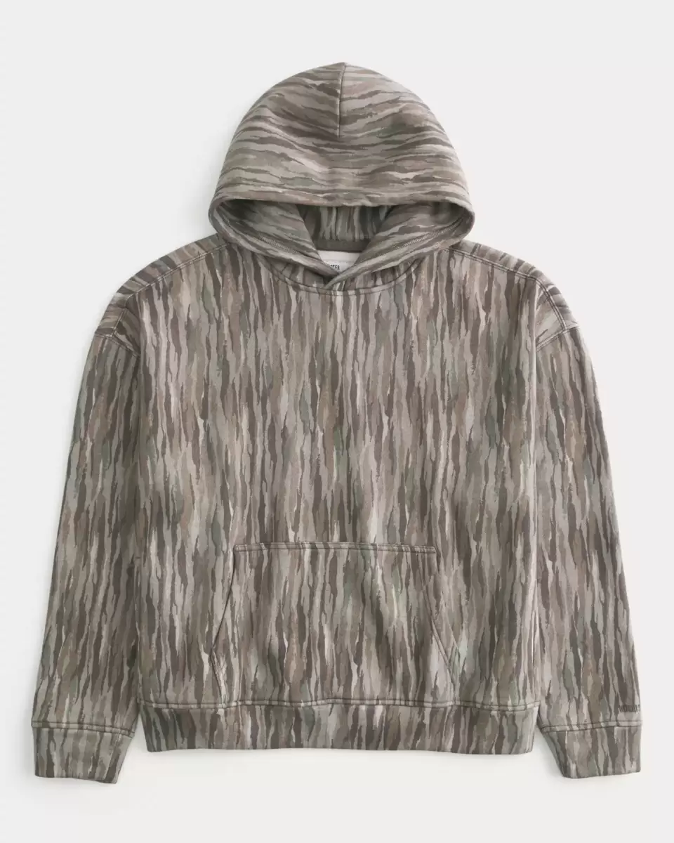 Ta supermiękka, niezwykle wygodna bluza z kapturem z polaru ma wzór kamuflażowy na całej powierzchni. Kaptur, przednia kieszeń kangurka, długie rękawy. Luźny krój. Produkt importowany.