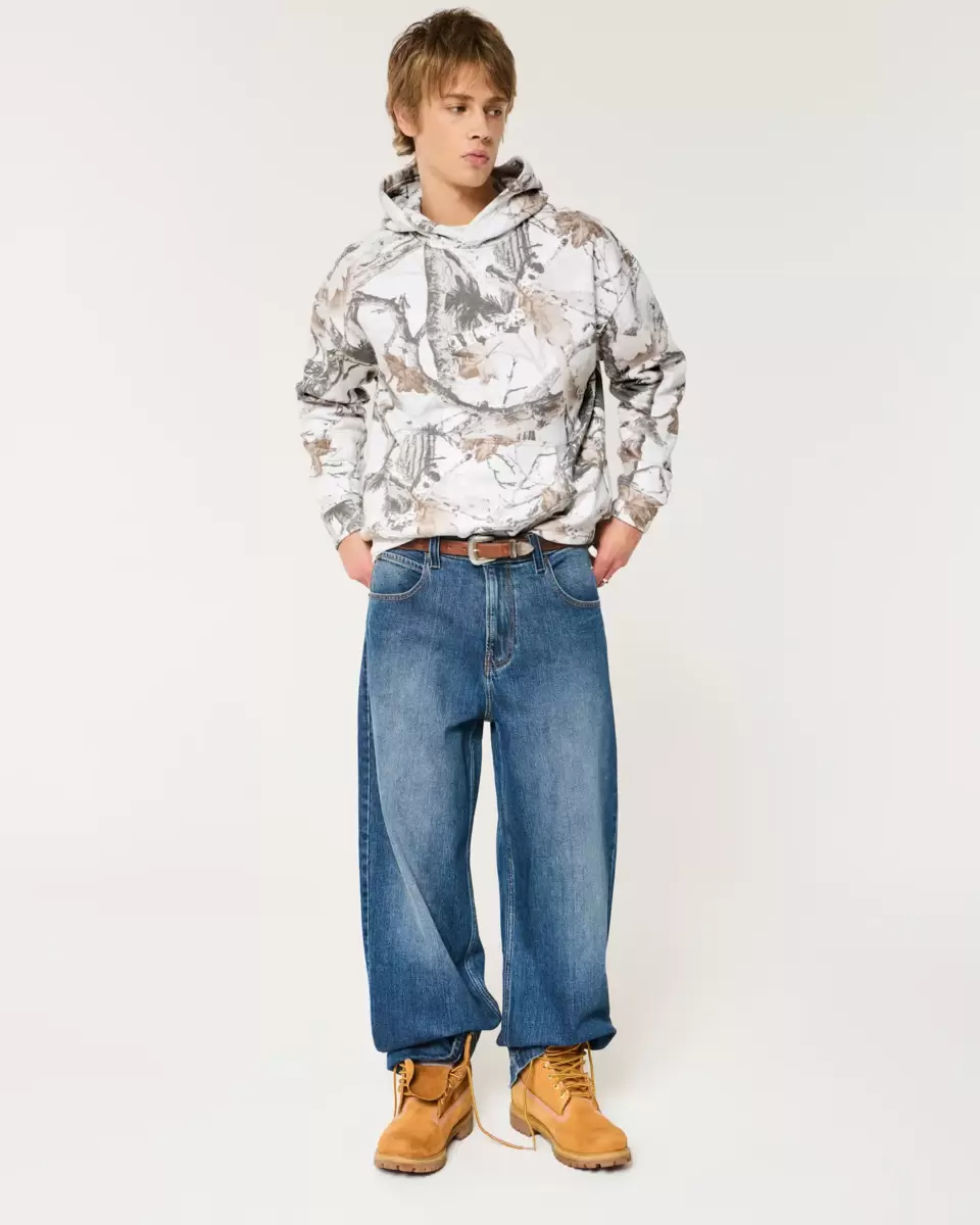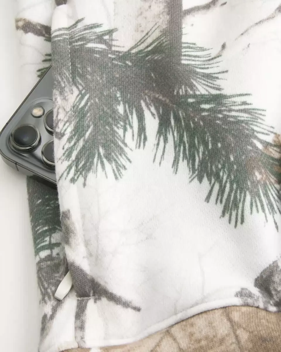 Supermiękka bluza z kapturem z polaru z wzorem moro na całej powierzchni. Kaptur, przednia kieszeń kangurka, długie rękawy. Luźny krój. Produkt importowany.