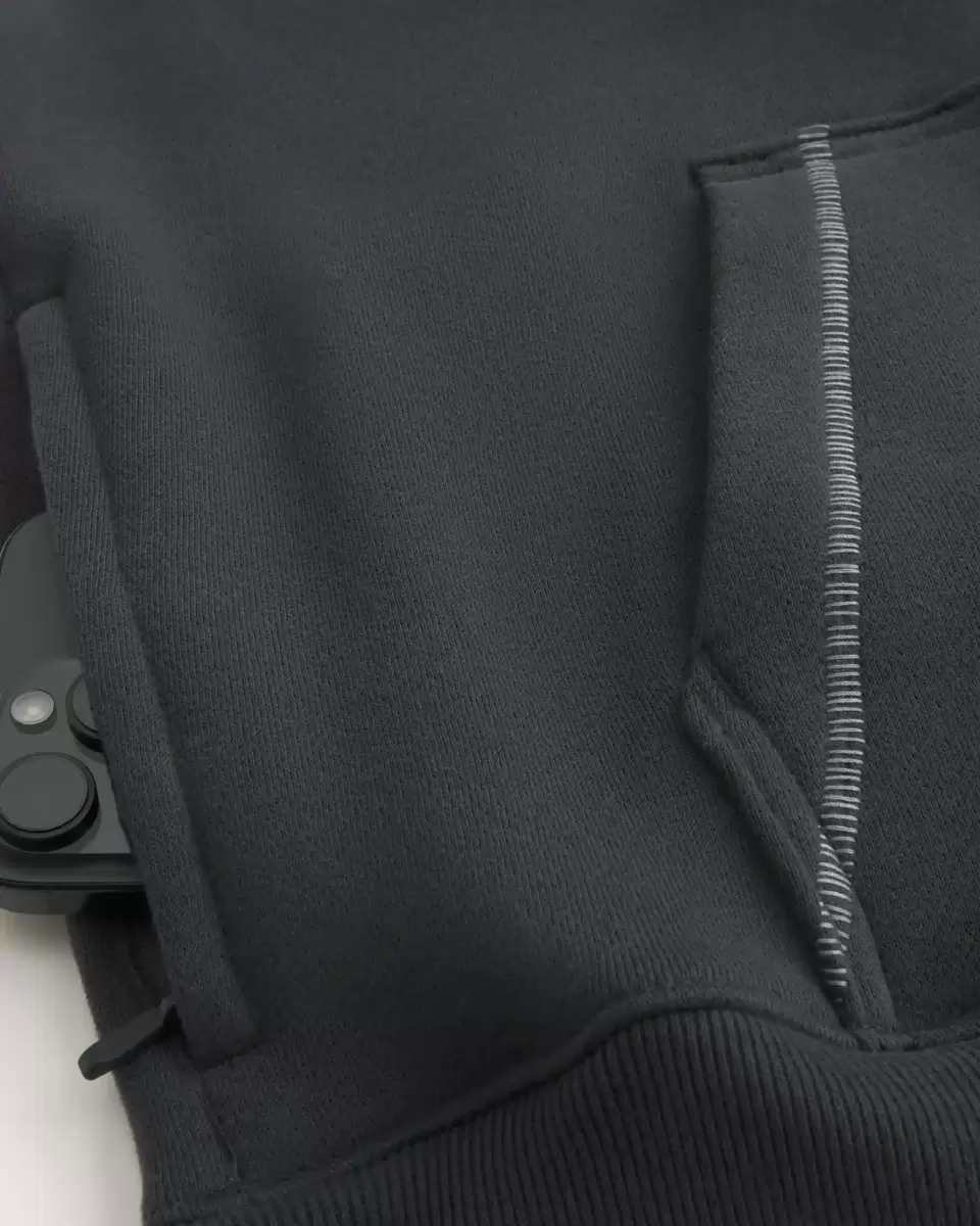 Ta supermiękka bluza z kapturem z polaru ma kontrastowe przeszycia i kieszeń kangurkę z przodu. Kaptur, długie rękawy. Luźny krój. Produkt importowany.