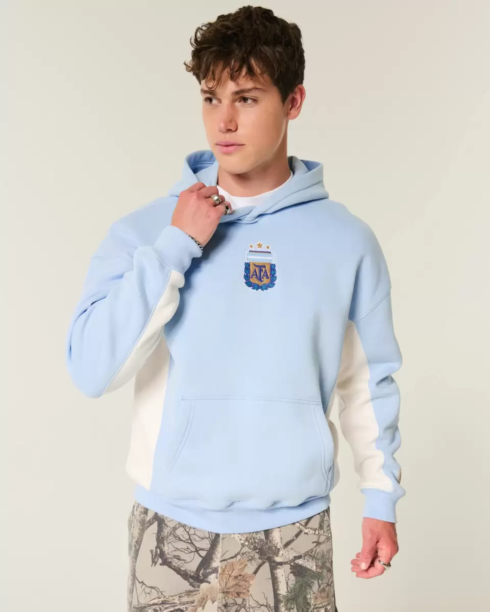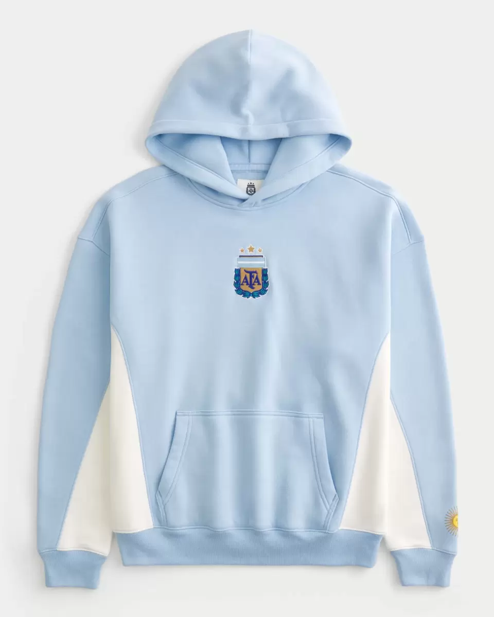 Bardzo miękka bluza z kapturem z polaru z oficjalnym haftem graficznym Argentyńskiego Związku Piłki Nożnej AFA na klatce piersiowej, grafiką słońca na lewym rękawie i grafiką numeru z tyłu. Importowane.