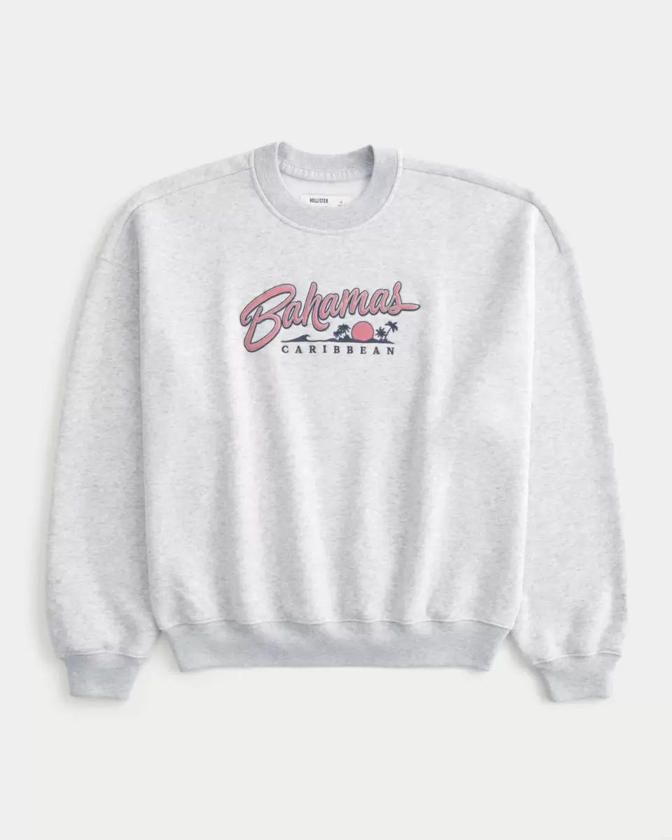 Ta supermiękka bluza polarowa z graficznym haftem z motywem Bahamów i Karaibów. Okrągły dekolt, długie rękawy. Luźny krój Baggy Cinch. Importowane.