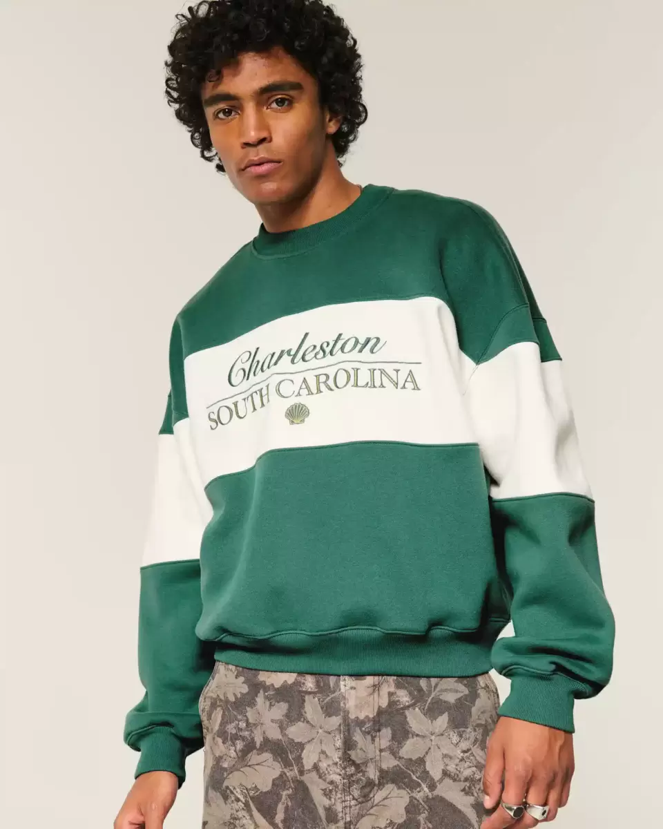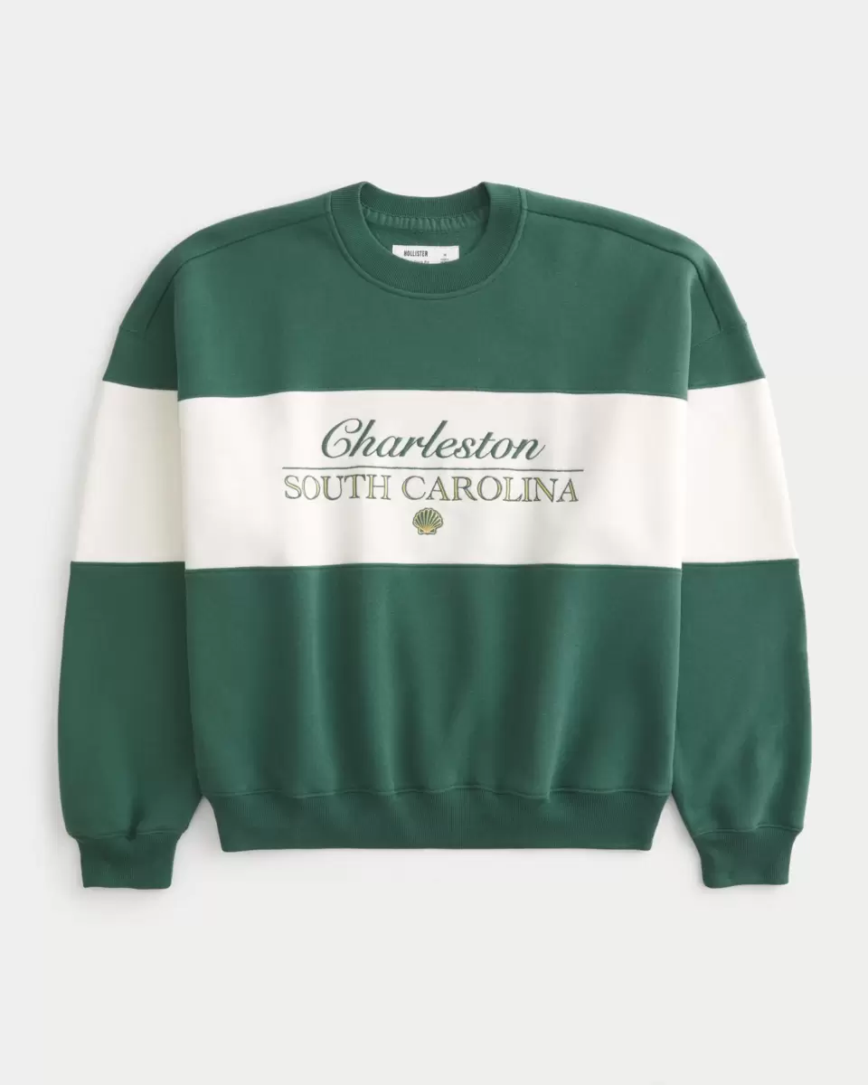Ta supermiękka bluza polarowa z graficznym haftem Charleston South Carolina. Okrągły dekolt, długie rękawy. Luźny krój Baggy Cinch. Importowane.
