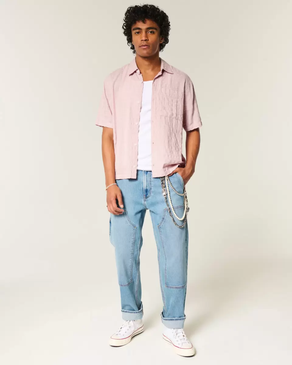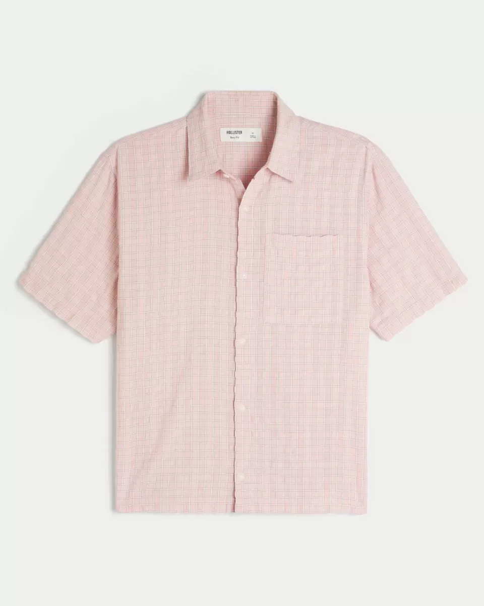 Ta klasyczna koszula z krótkim rękawem ma zapięcie na guziki i kieszeń na lewej piersi. Krótkie rękawy i kołnierzyk. Krój pudełkowy.