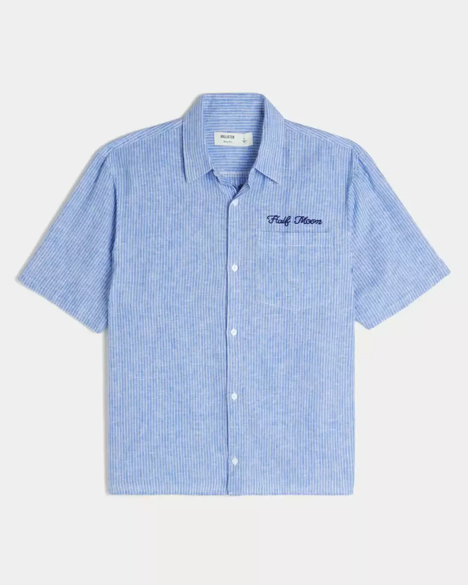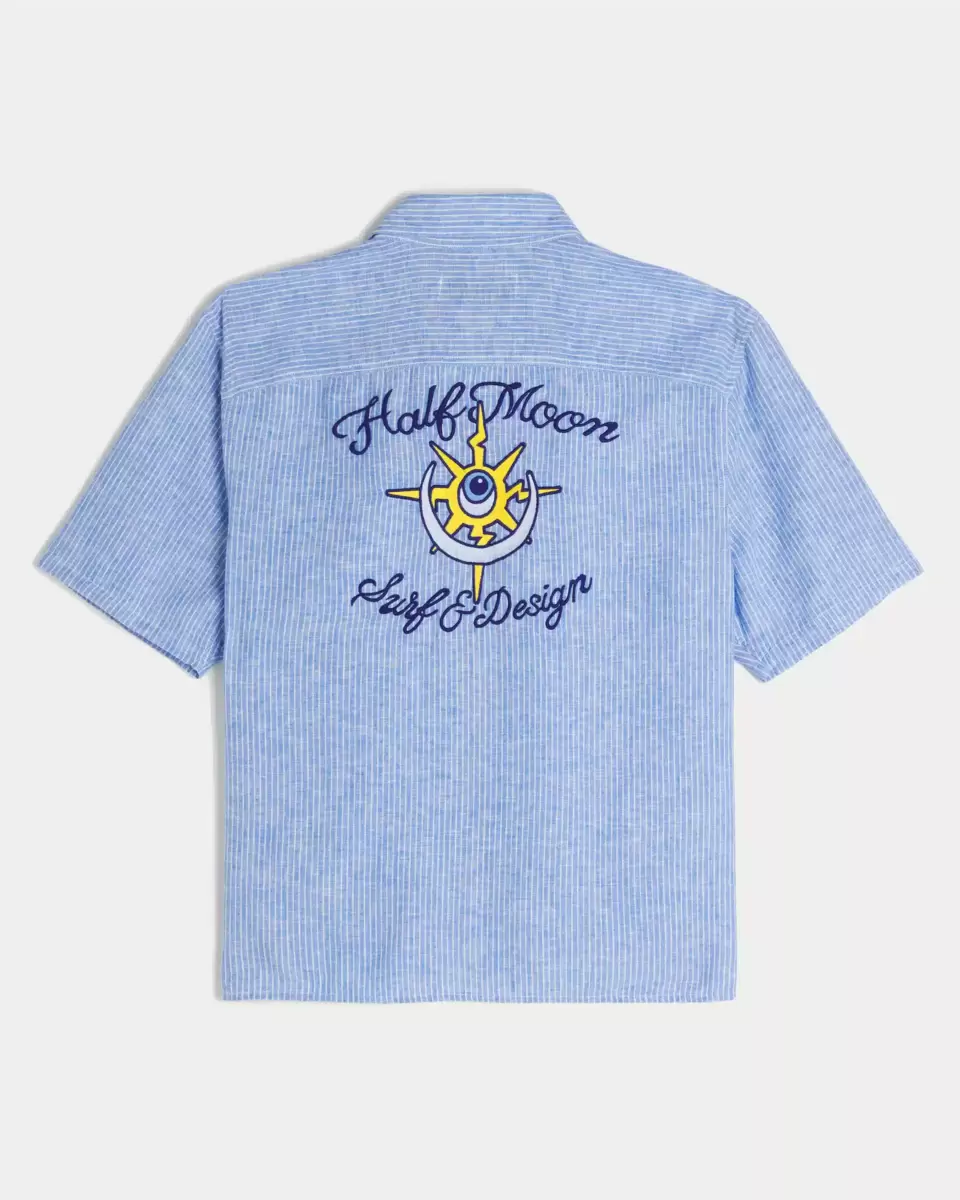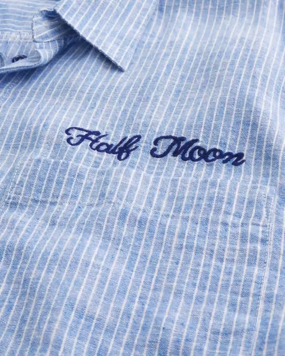 Ta klasyczna koszula wykonana jest z miękkiej mieszanki lnu i ozdobiona jest graficznym haftem Half Moon nad lewą kieszenią na piersi i z tyłu. Kołnierzyk typu „böck”, krótkie rękawy, zapięcie na guziki. Luźny krój. Importowane.