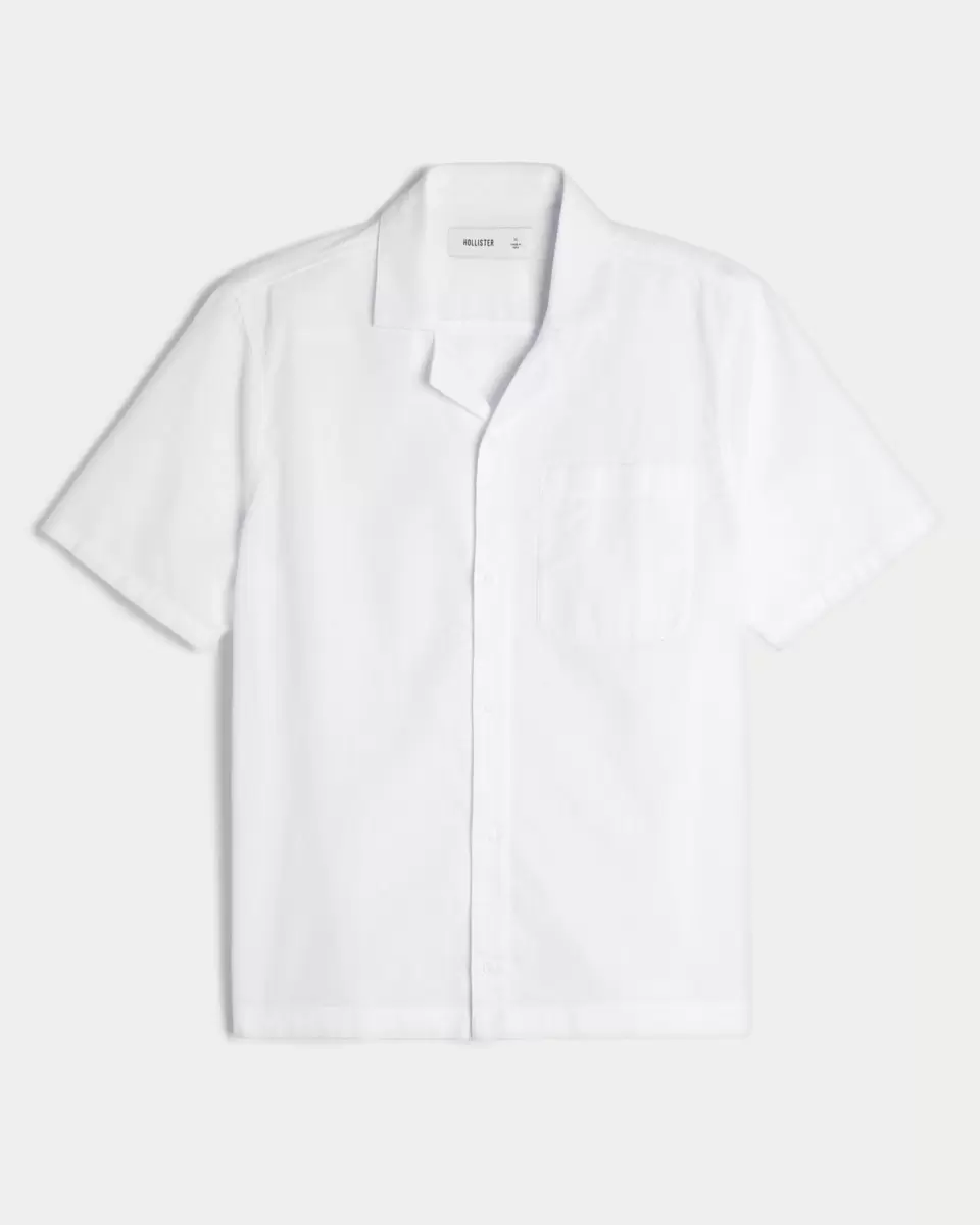 Klasyczna koszula z krótkim rękawem z teksturowanego materiału, zapinana na guziki na całej długości i z kieszenią na lewej piersi. Kołnierzyk. Luźny krój. Produkt importowany.