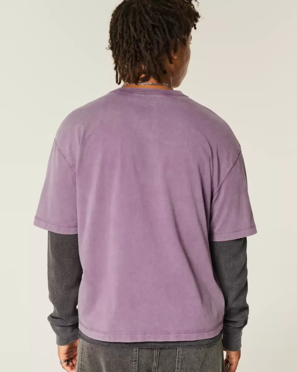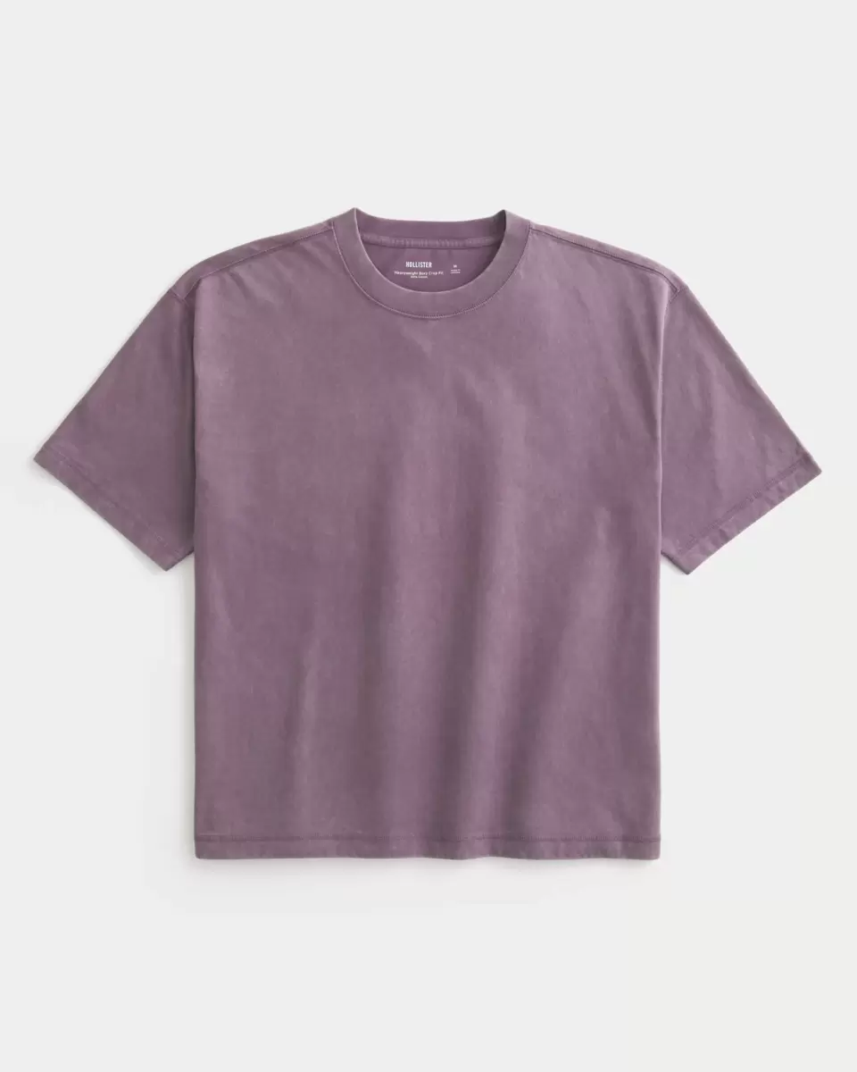 Supermiękki, ciężki T-shirt ze 100% bawełny z okrągłym dekoltem i krótkimi rękawami. Wygląd spranego materiału. Krótszy, pudełkowy krój.