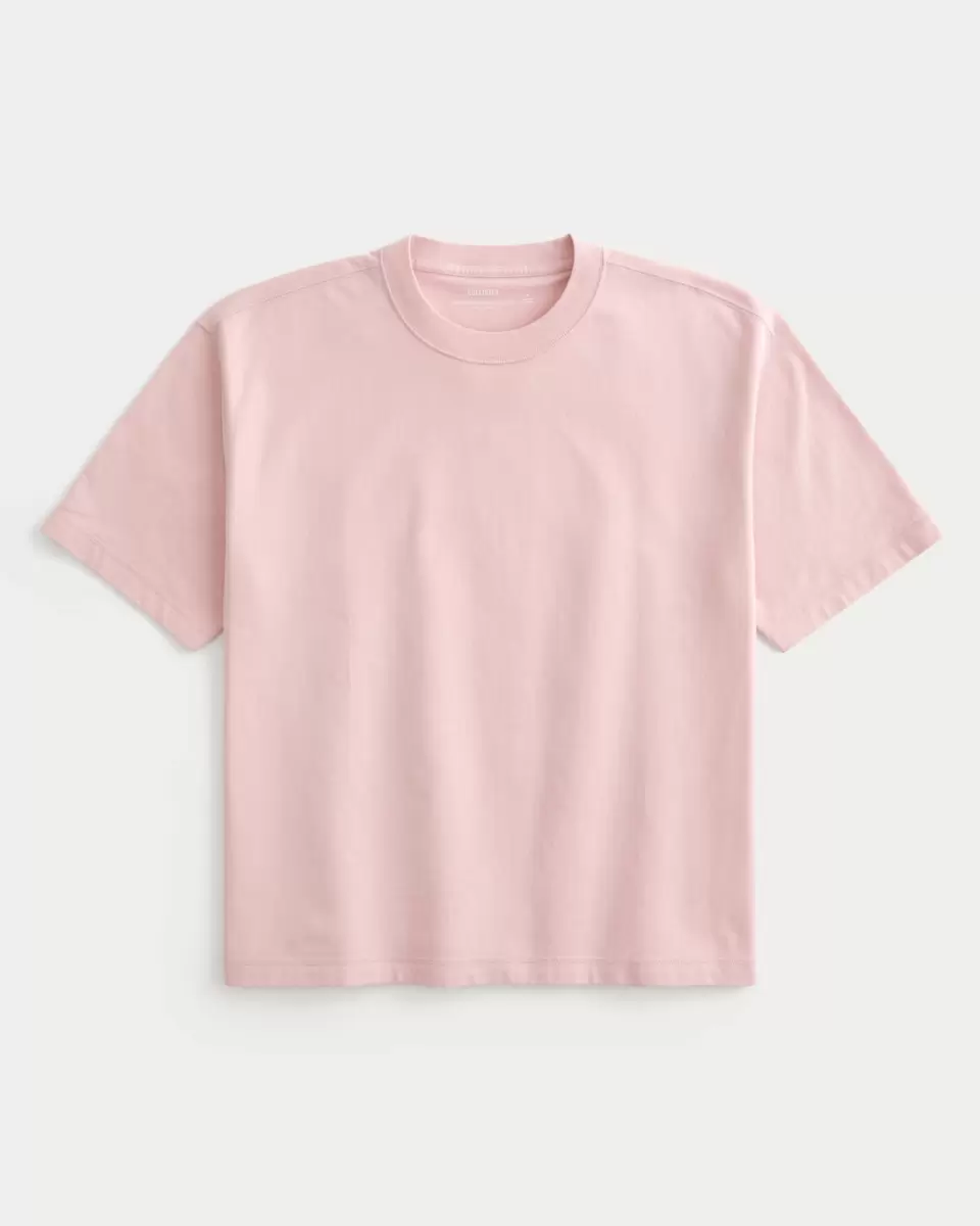 Supermiękki, ciężki T-shirt ze 100% bawełny z okrągłym dekoltem i krótkimi rękawami. Wygląd spranego materiału. Krótszy, pudełkowy krój.