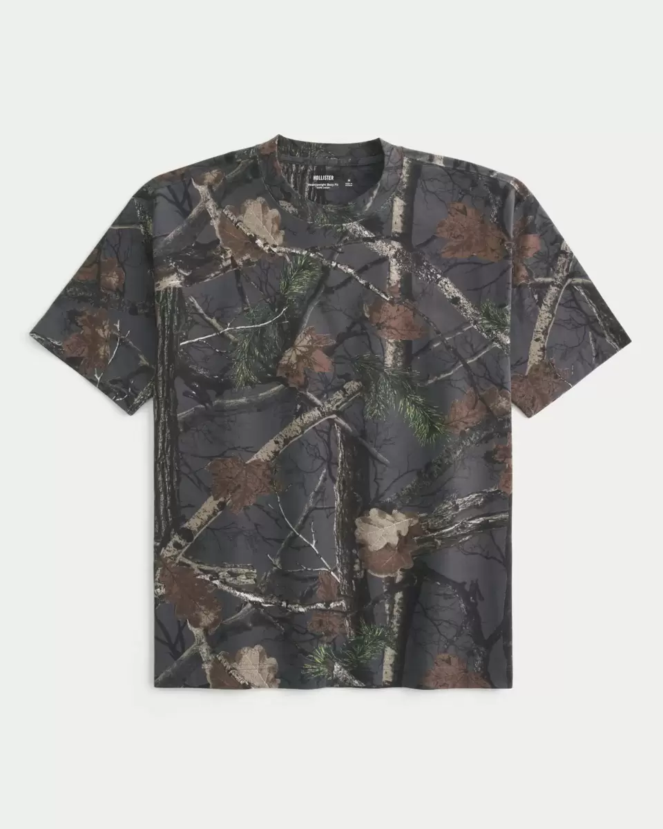 Wygodna koszulka z grubej bawełny 100% z wzorem moro na całej powierzchni. Okrągły dekolt, krótkie rękawy. Luźny krój. Produkt importowany.