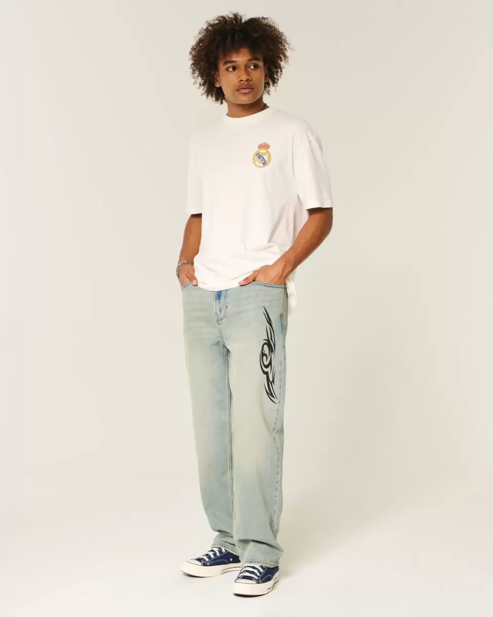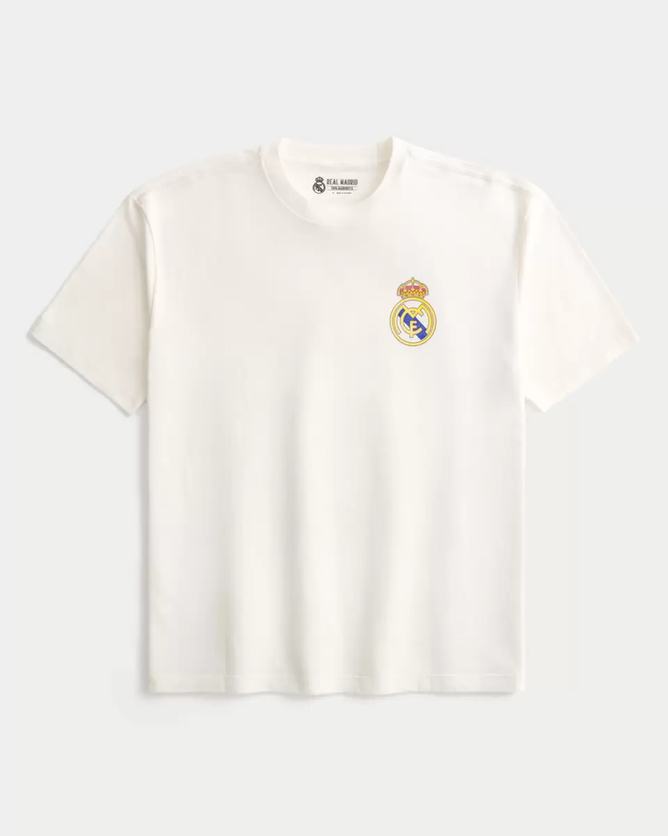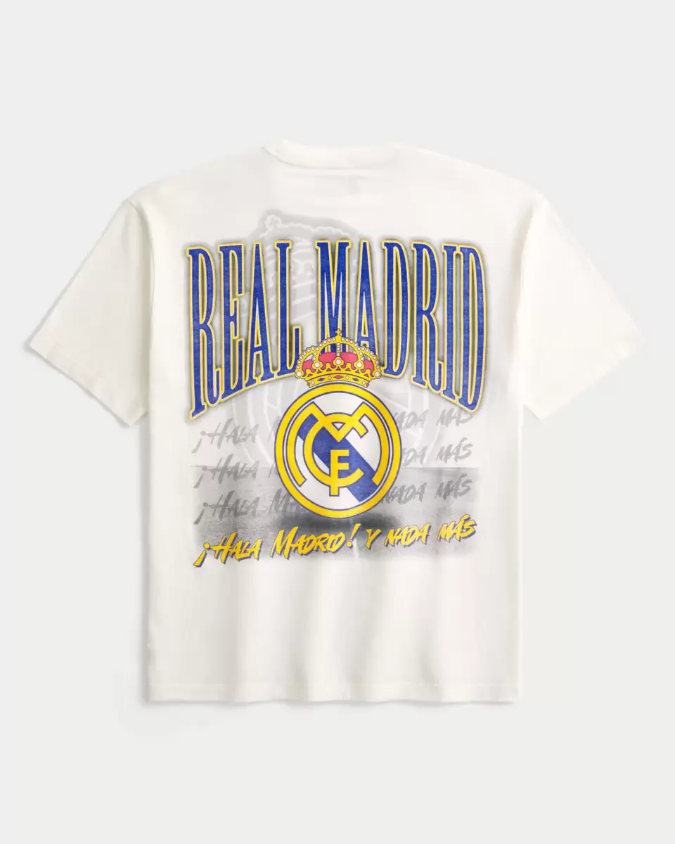 Supermiękka koszulka ze 100% bawełny z oficjalnym, licencjonowanym nadrukiem Realu Madryt CF na lewej piersi i plecach. Okrągły dekolt, krótkie rękawy. Luźny krój. Produkt importowany.