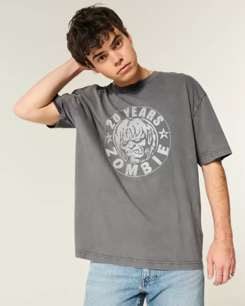 Supermiękka koszulka ze 100% bawełny z oficjalnym, licencjonowanym nadrukiem 20 Years Zombie Rob Zombie. Okrągły dekolt, krótkie rękawy. Luźny krój. Produkt importowany.