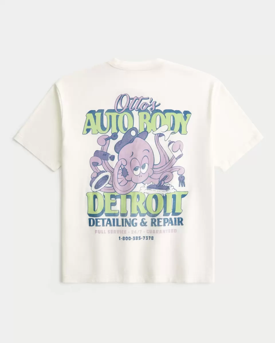 Supermiękka, 100% bawełna z nadrukiem Otto’s Auto Body Detroit na lewej piersi i plecach. Okrągły dekolt, krótkie rękawy. Luźny krój. Produkt importowany.