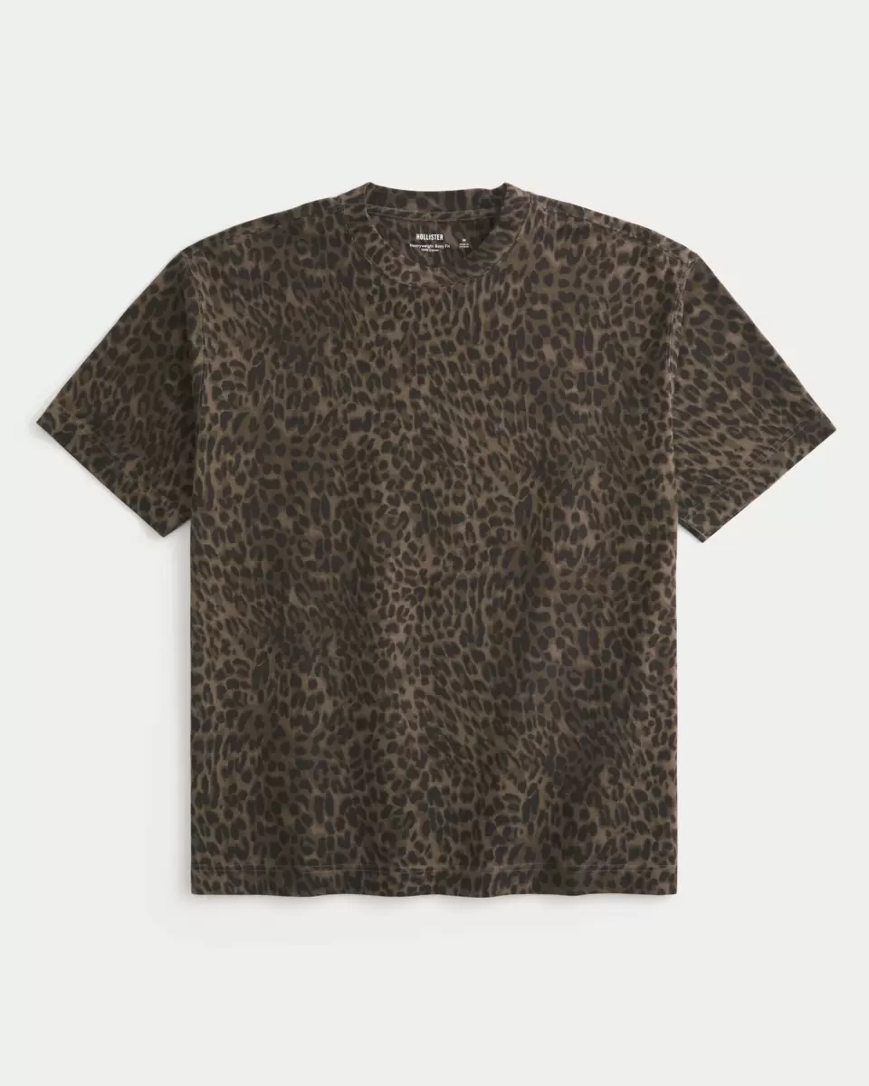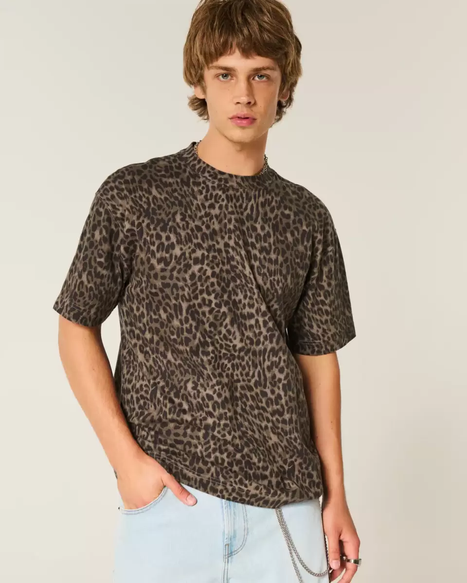 Supermiękki, ciężki T-shirt ze 100% bawełny z okrągłym dekoltem i krótkimi rękawami. Nadruk w panterkę na całej powierzchni. Luźny krój.