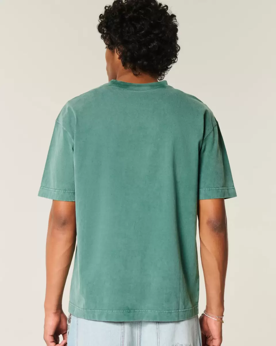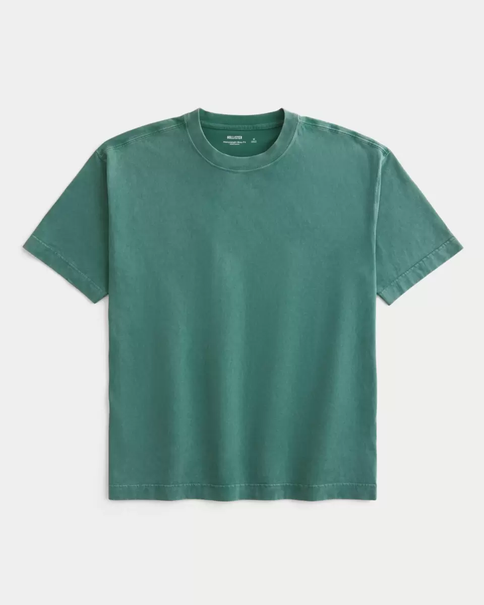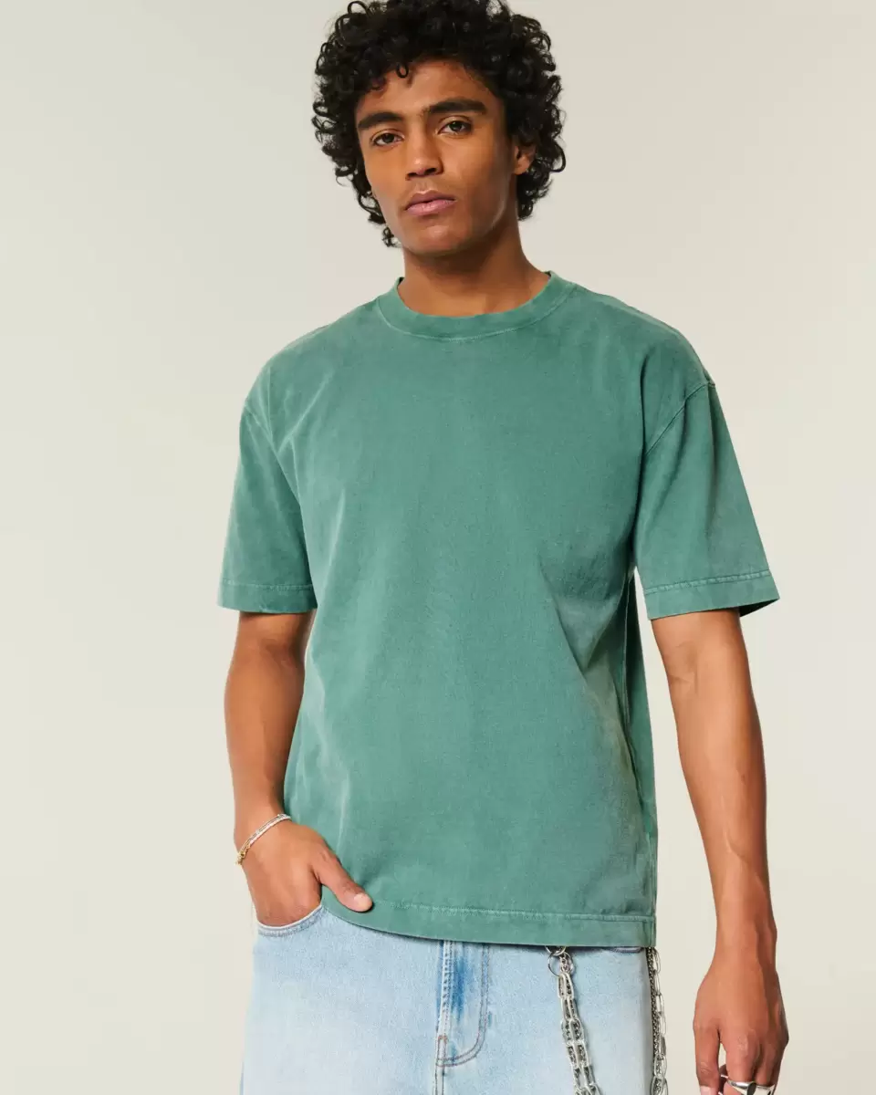 Supermiękka, gruba koszulka ze 100% bawełny z okrągłym dekoltem i krótkimi rękawami. Wykończenie ze spranego materiału. Krój pudełkowy.