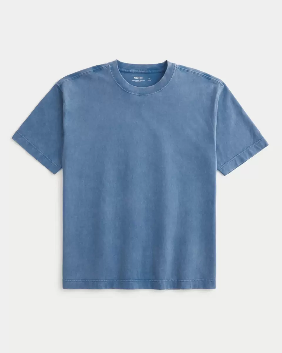 Supermiękka, gruba koszulka ze 100% bawełny, z okrągłym dekoltem i krótkimi rękawami. Wykończenie z efektem sprania. Luźny krój.