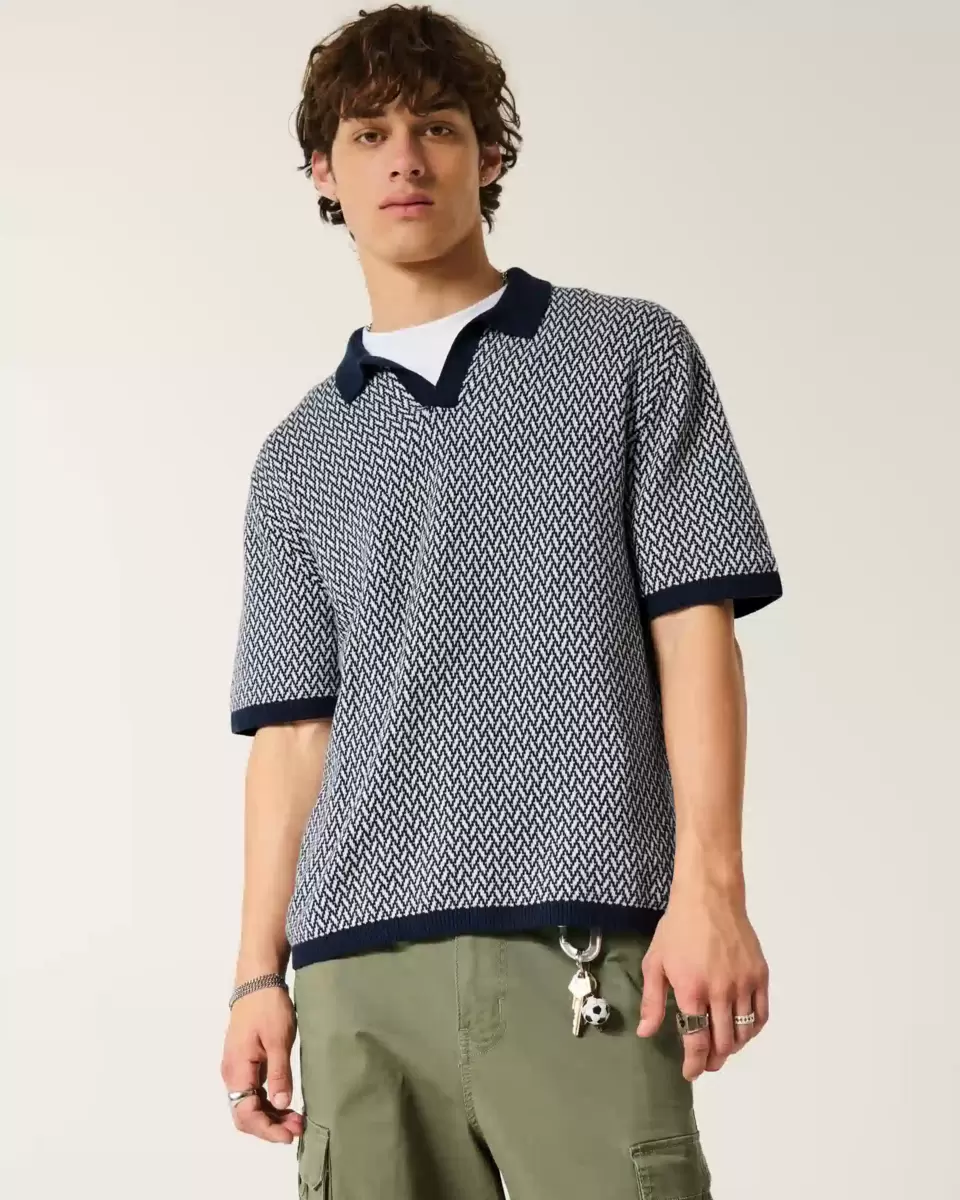 Supermiękka, dzianinowa koszulka polo z bezguzikowym zapięciem i krótkimi rękawami. Klasyczny wzór. Luźny krój. Produkt importowany.