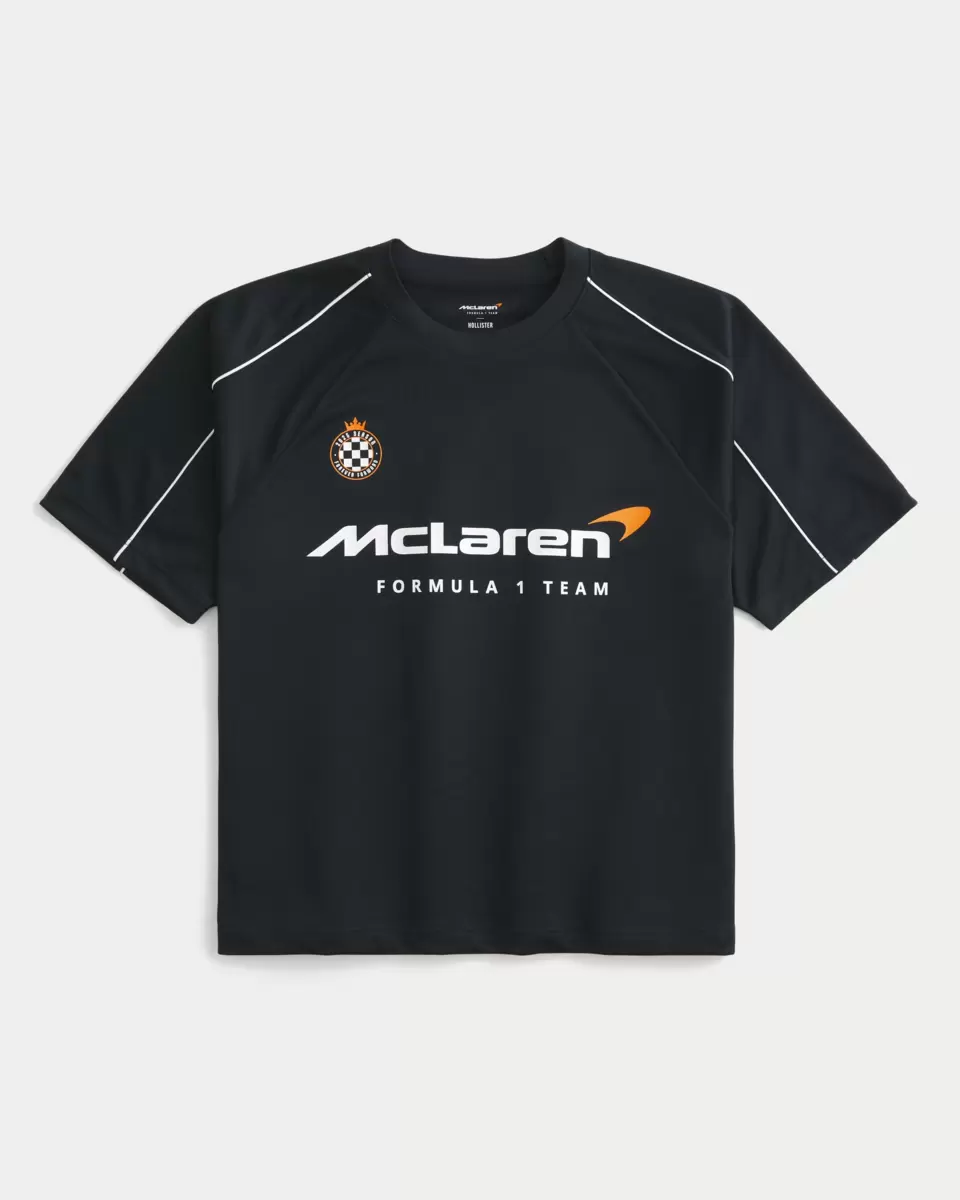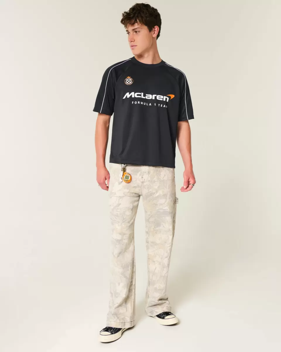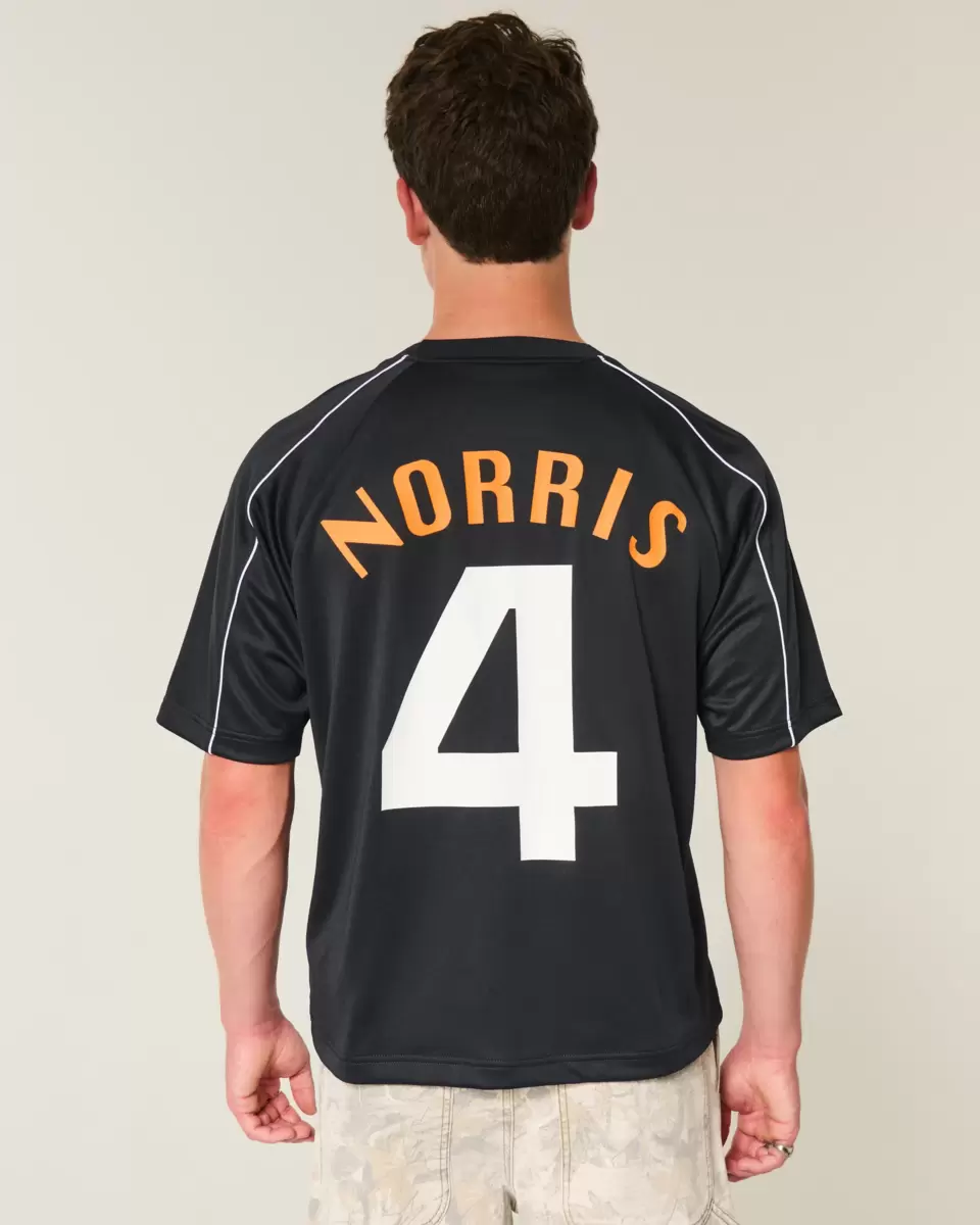 Ta klasyczna, supermiękka koszulka piłkarska z oficjalnym, licencjonowanym nadrukiem zespołu McLaren Formula 1 z przodu i grafiką Lando Norrisa z tyłu. Krótkie rękawy, dekolt w serek. Luźny krój. Importowane.