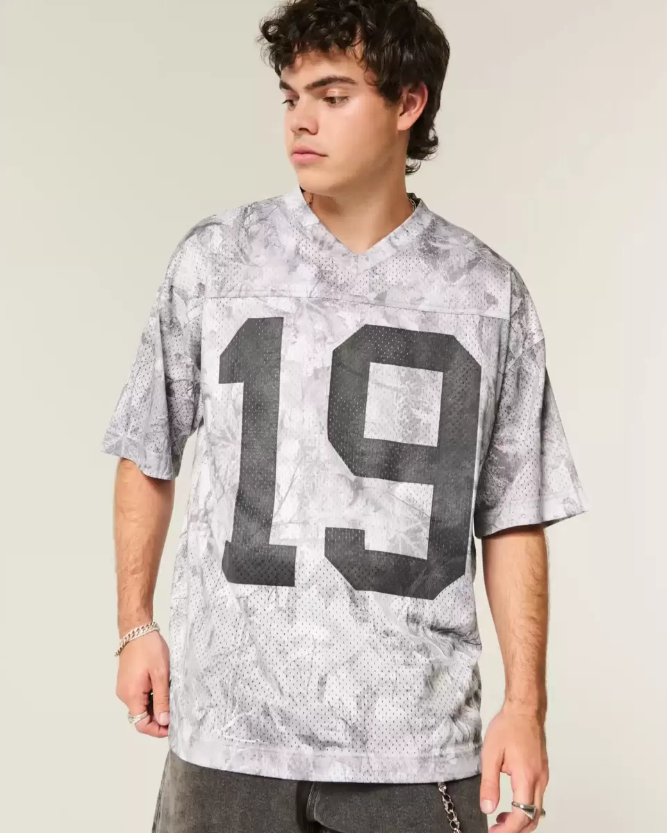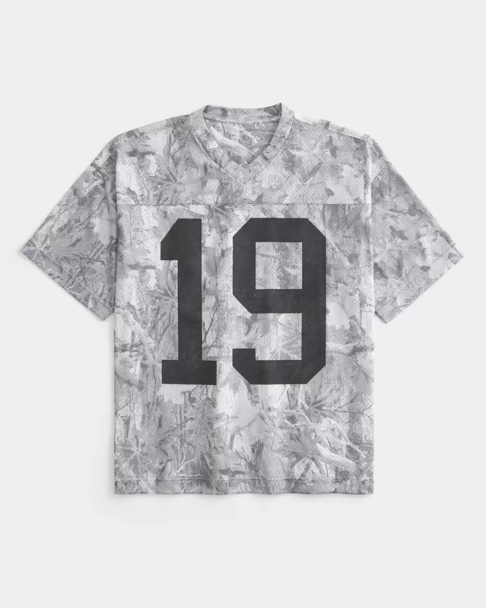 Ta klasyczna koszulka piłkarska ma wzór kamuflażowy na całej powierzchni i nadruk z numerem. Dekolt w serek, krótkie rękawy, miękka siateczka. Luźny krój. Produkt importowany.