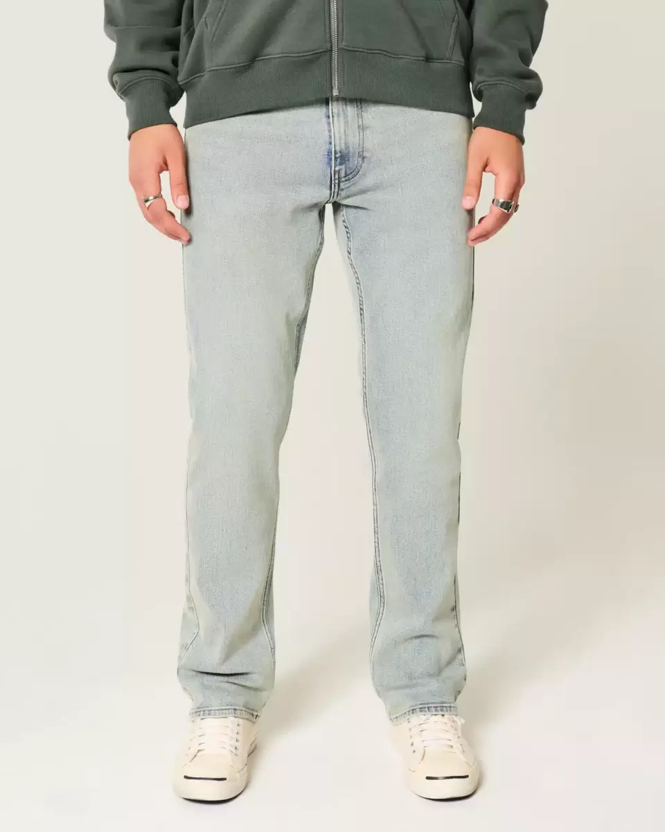Wygodne jeansy inspirowane rokiem 2000, w jasnym odcieniu, z prostą, wąską nogawką. Wyblaknięcia, przetarcia. Importowane.