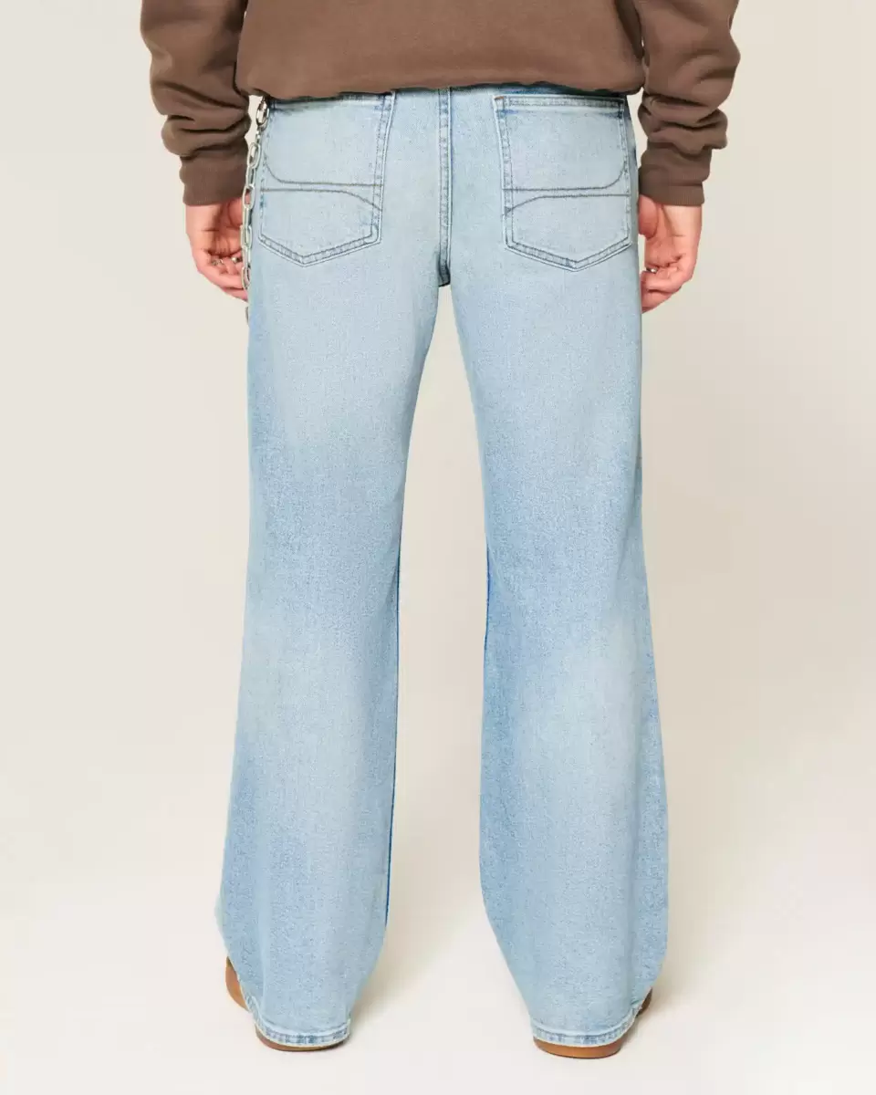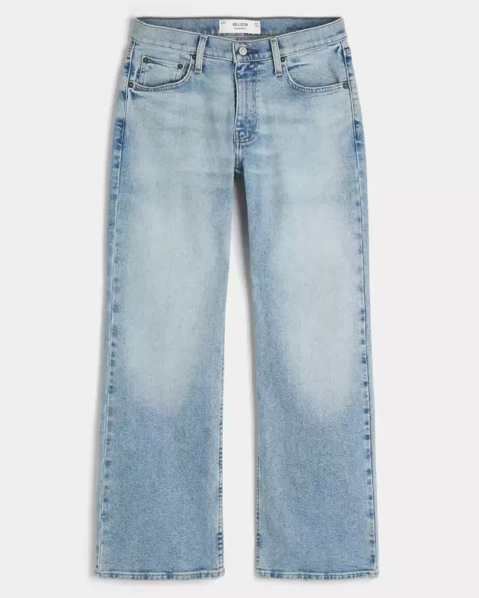 Wygodne jeansy w jasnym kolorze, z luźnymi nogawkami i cholewkami. Wyblaknięcia, przetarcia. Importowane.