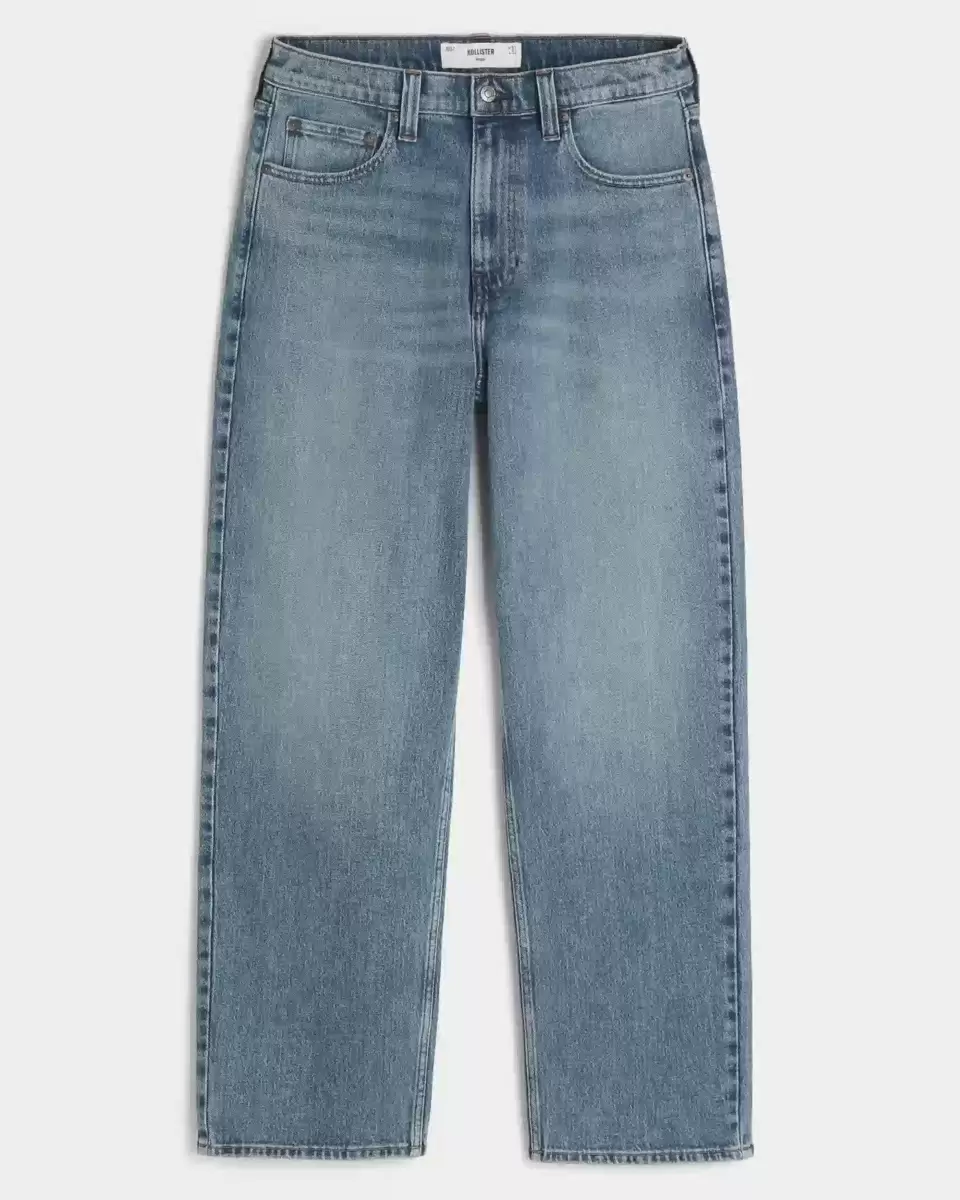 Wygodne jeansy w średnim odcieniu, z luźną nogawką. Wyblakłe, postrzępione, kultowy fason z 5 kieszeniami. Importowane.