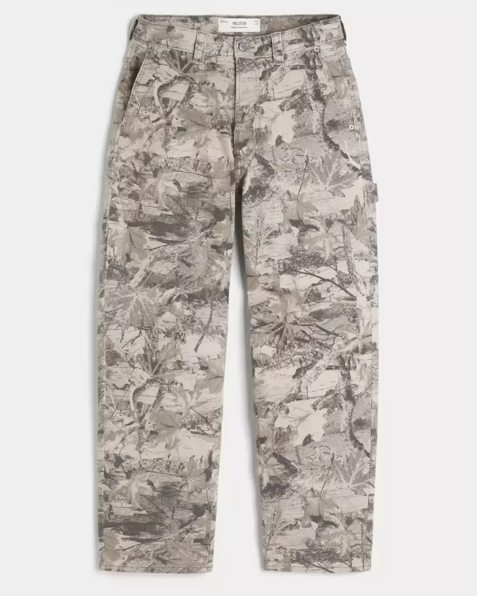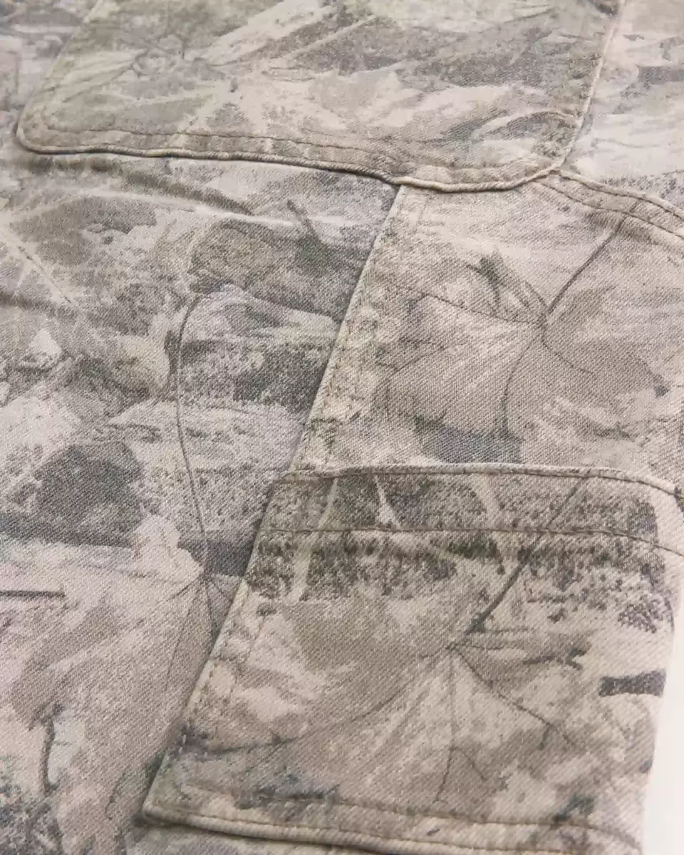 Wygodne jeansy typu skater w stylu malarza, z luźną nogawką, szlufką na lewej stronie i dodatkowymi kieszeniami. Wzór kamuflażowy na całej powierzchni. Produkt importowany.