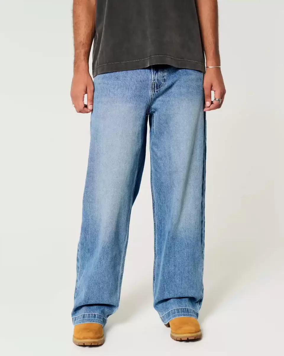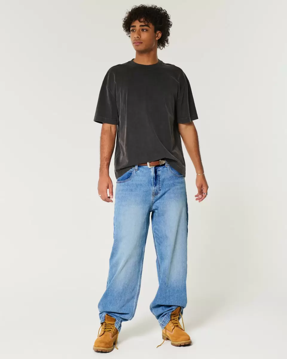 Ultrawygodne jeansy w średnim odcieniu, z bardzo luźną nogawką. Przetarcia i przetarcia. Importowane.