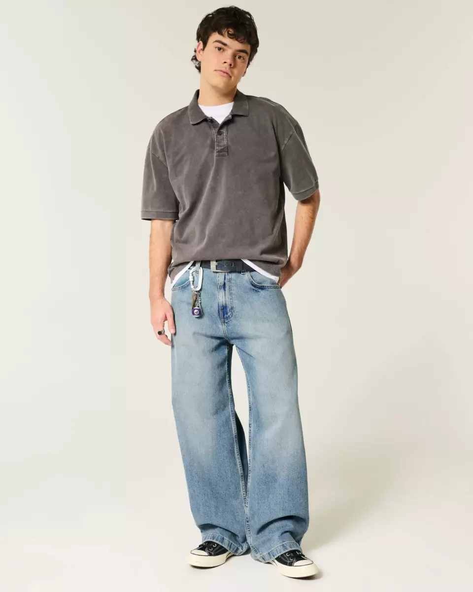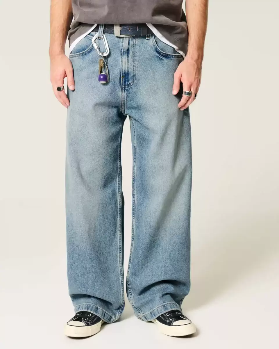 Wygodne jeansy w średnim odcieniu, z bardzo luźnymi nogawkami i klasycznym fasonem z 5 kieszeniami. Wyblaknięcia. Importowane.