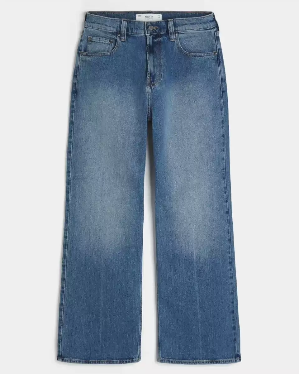 Wygodne jeansy z luźnymi nogawkami i rozcięciem typu bootcut. Średnio sprane, z przetarciami, kultowy fason z 5 kieszeniami. Importowane.