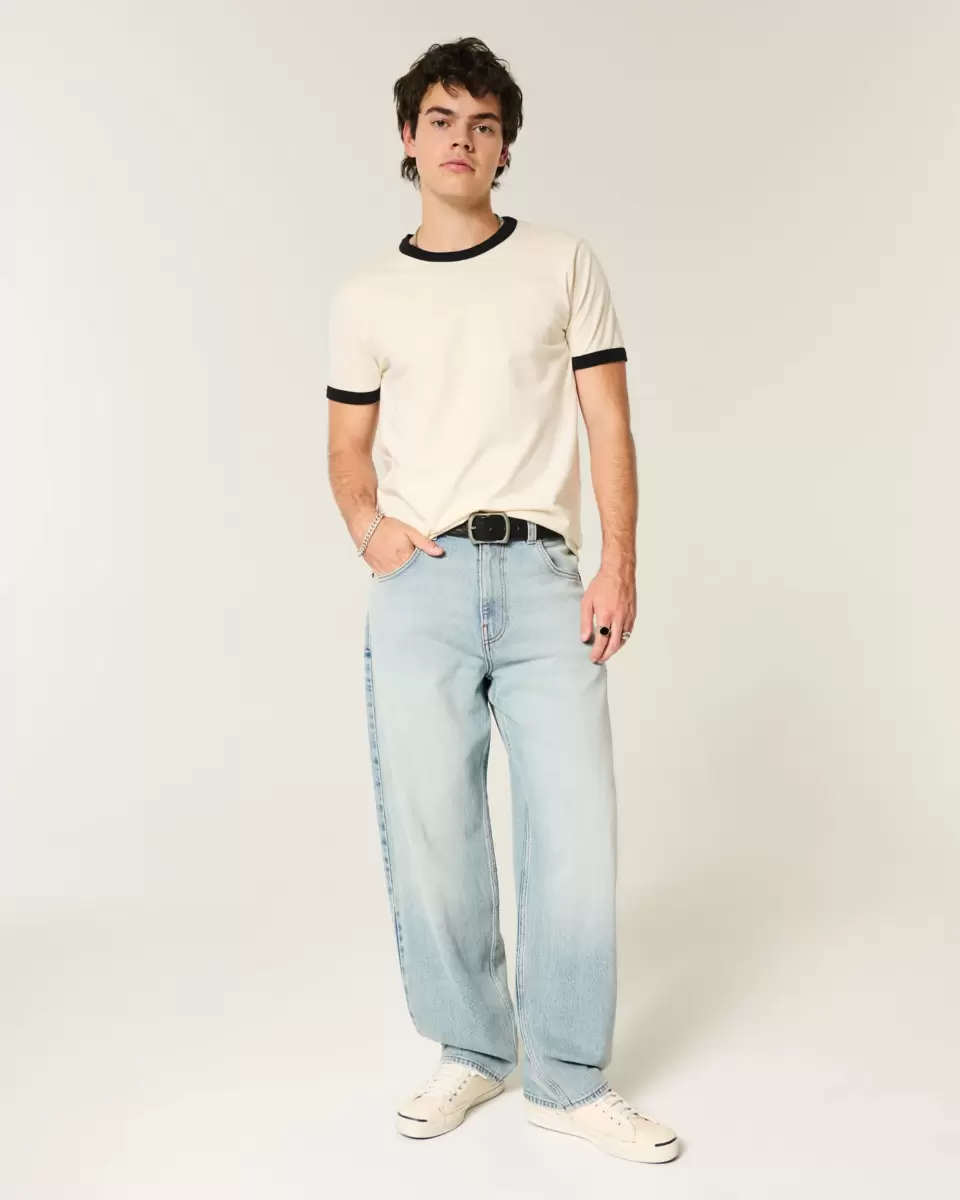 Wygodne jeansy typu skater w jasnym kolorze, z luźną nogawką. Wyblaknięcia. Importowane.
