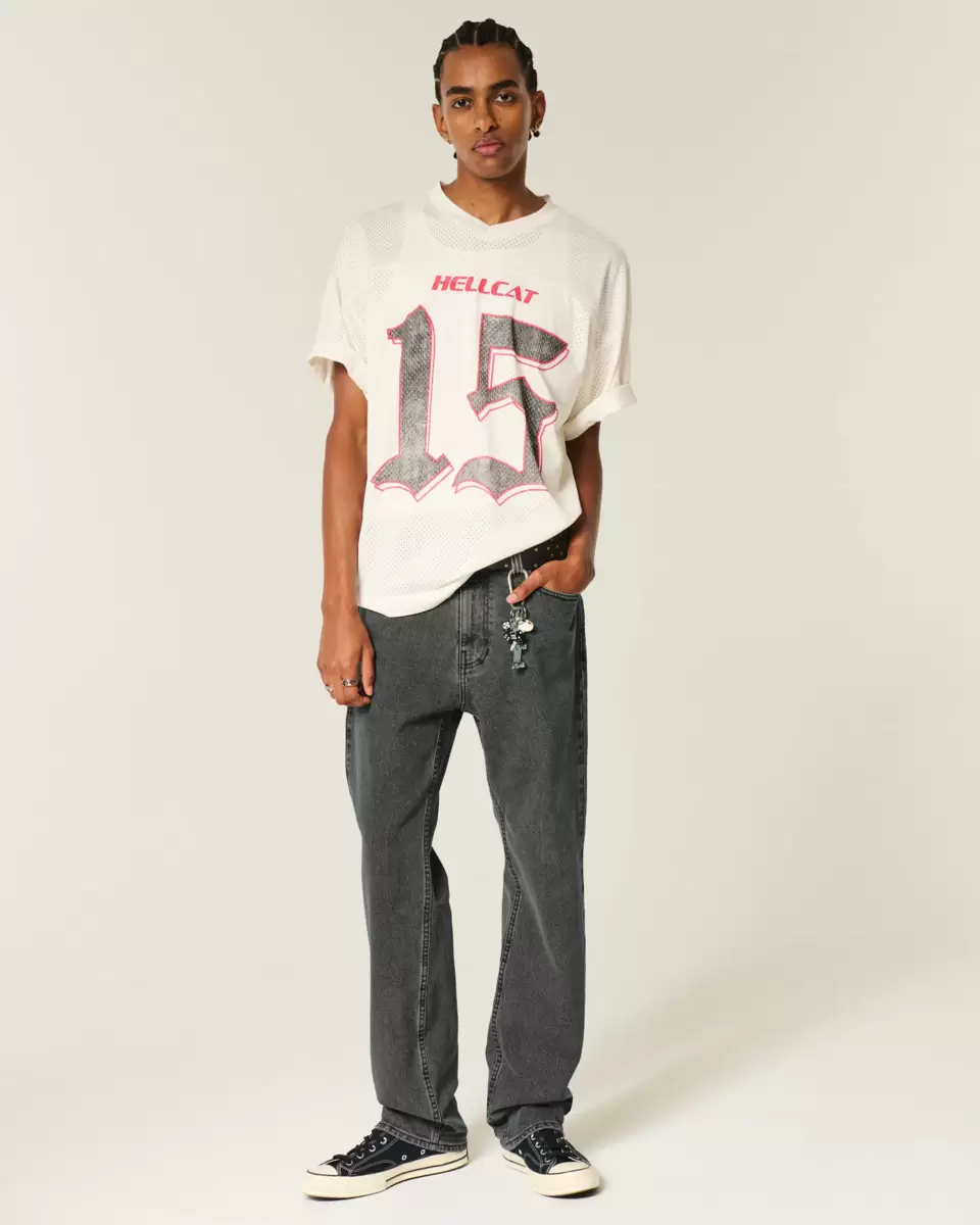 Wygodne jeansy w spranej czerni, z luźną nogawką. Kultowy fason z 5 kieszeniami. Importowane.