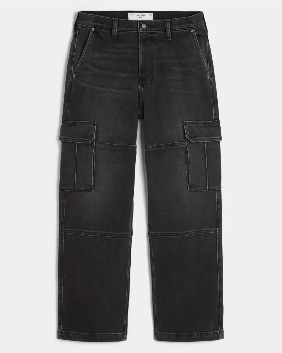 Ultrawygodne jeansy w spranej czerni, z luźną nogawką i bocznymi kieszeniami cargo. Szwy na kolanach, przetarcia i przetarcia. Importowane.