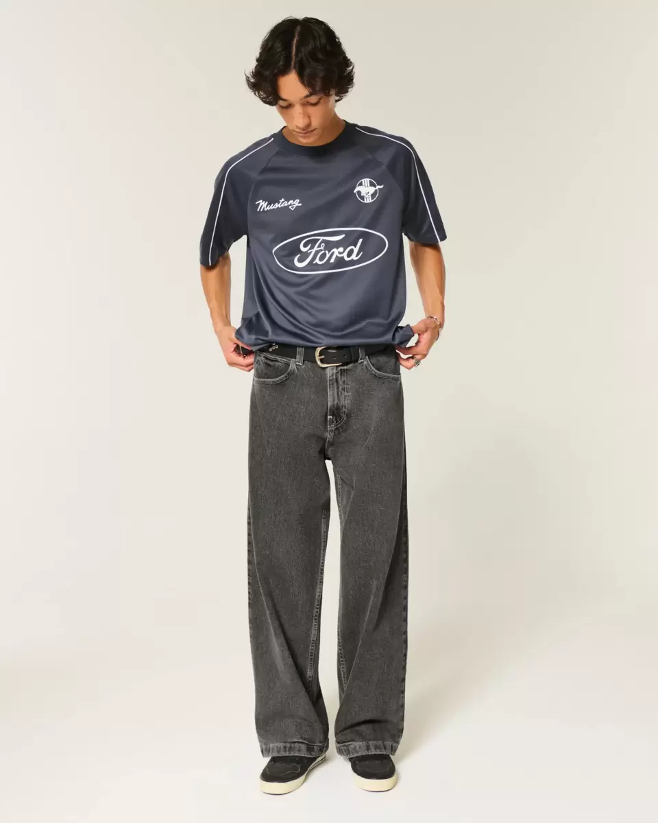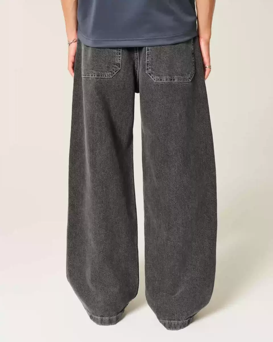 Wygodne jeansy w kolorze spranej czerni, z bardzo luźną nogawką. Importowane.