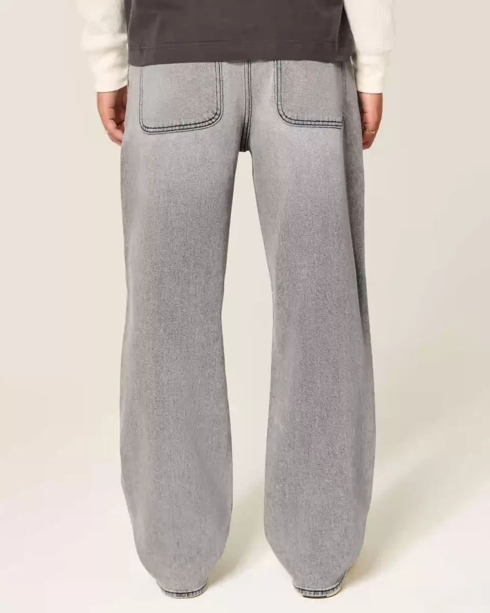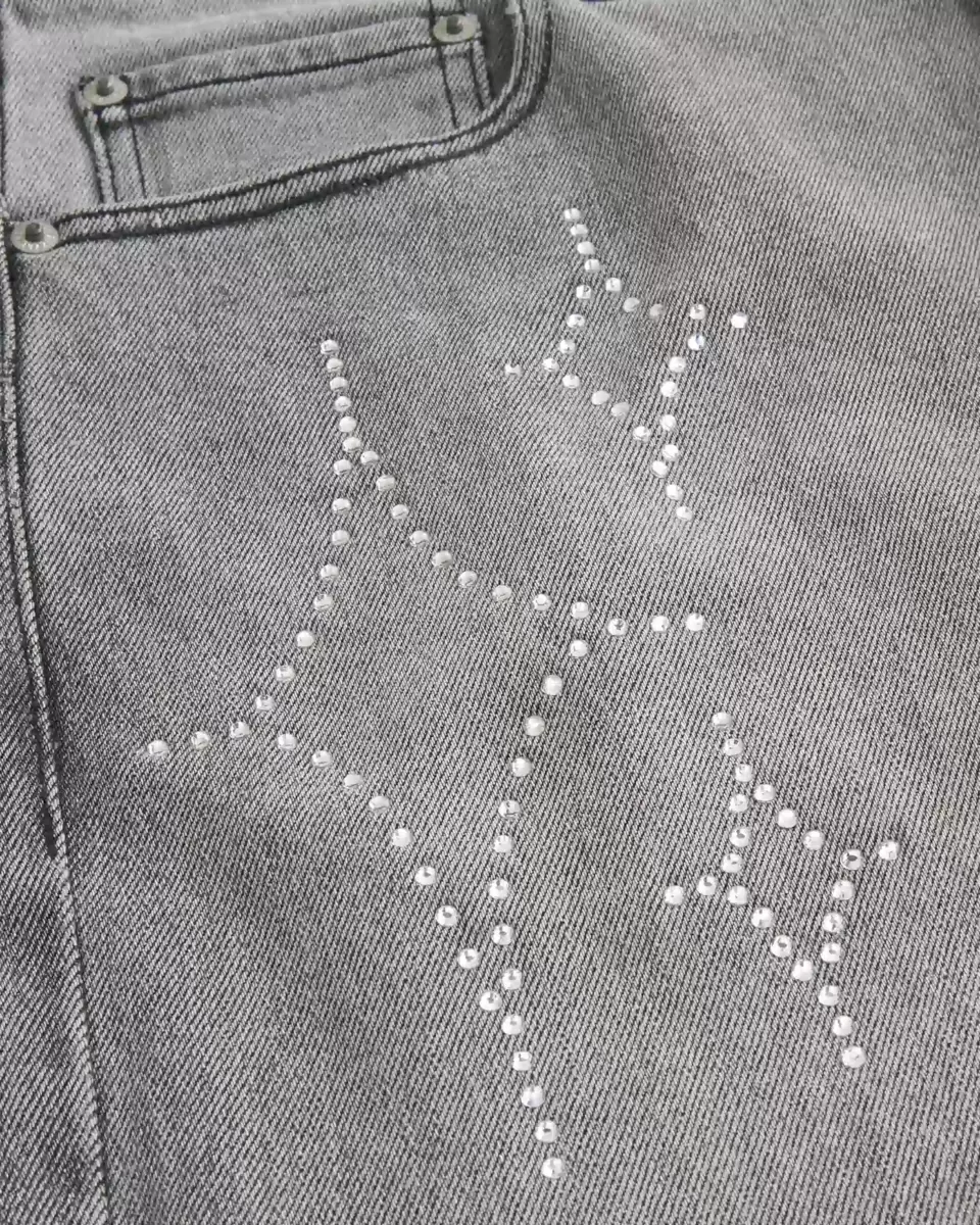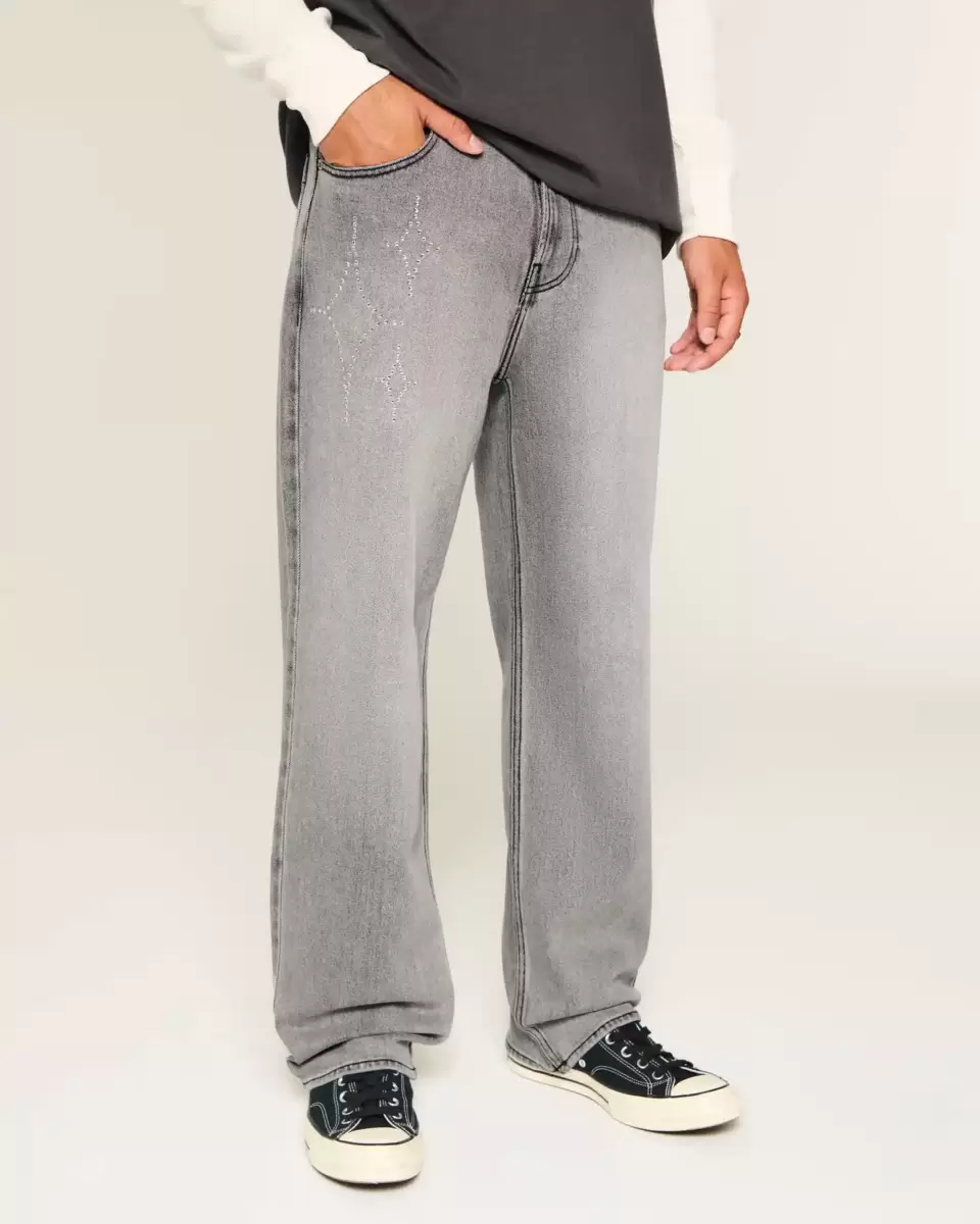 Wygodne jeansy w spranej czerni, z luźną nogawką. Ozdobna, wyblakła grafika w romby. Importowane.