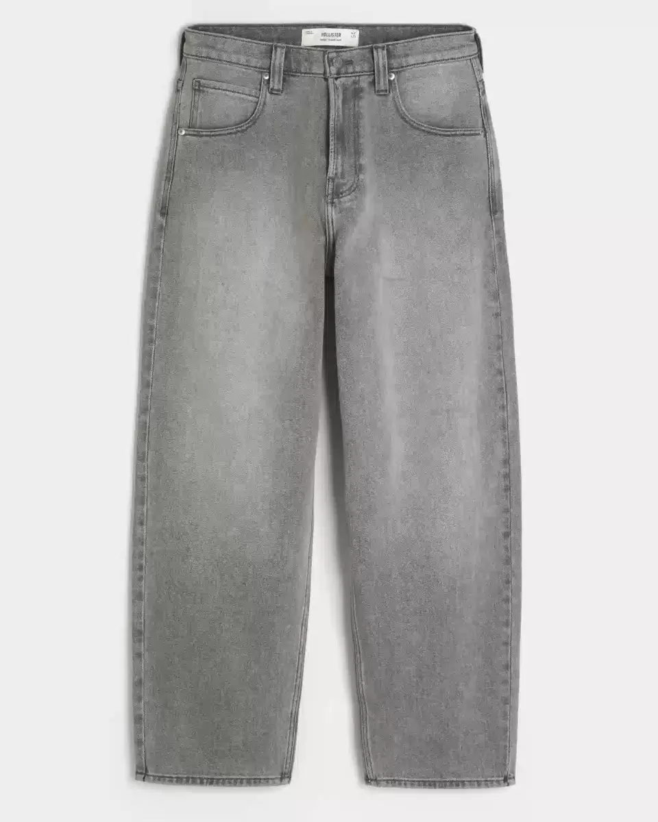 Wygodne jeansy typu skater z luźną nogawką. Szary denim z przetarciami, klasyczny fason z 5 kieszeniami. Importowane.