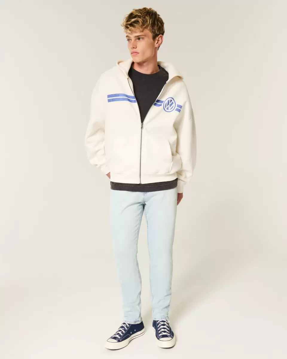 Jasne jeansy o dopasowanym kroju, z większą przestrzenią w udach. Wyblakły, kultowy fason z 5 kieszeniami. Importowane.