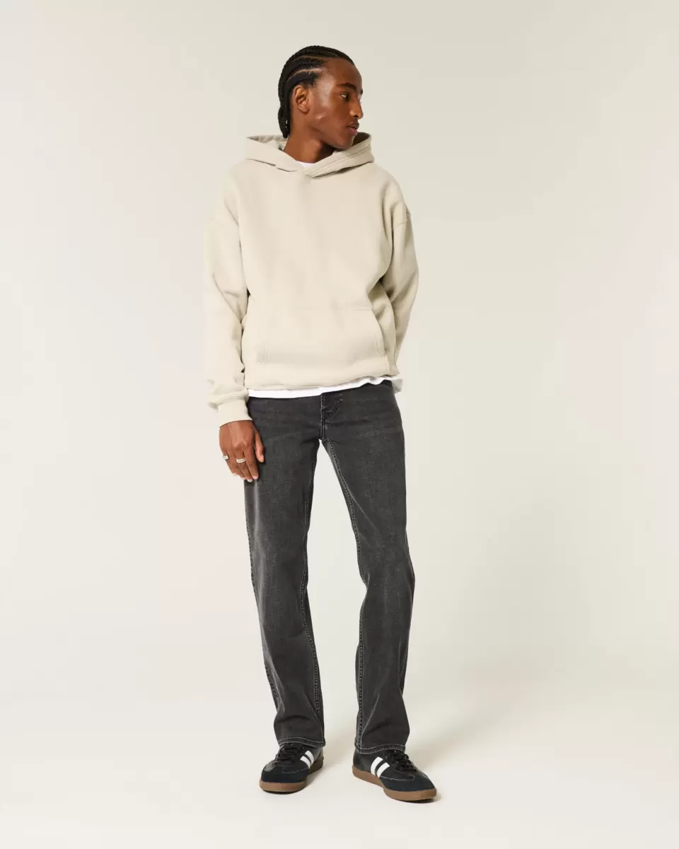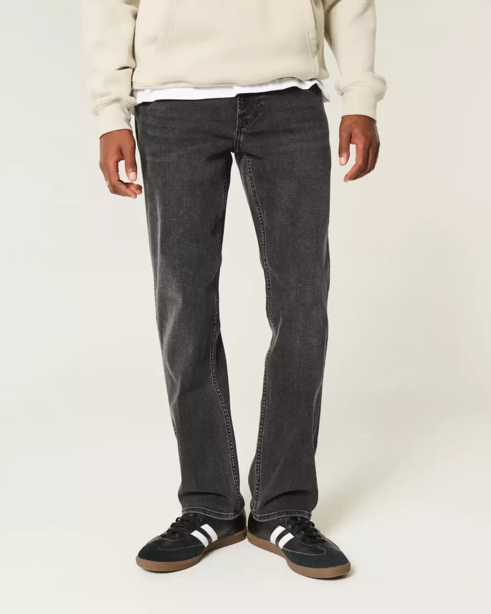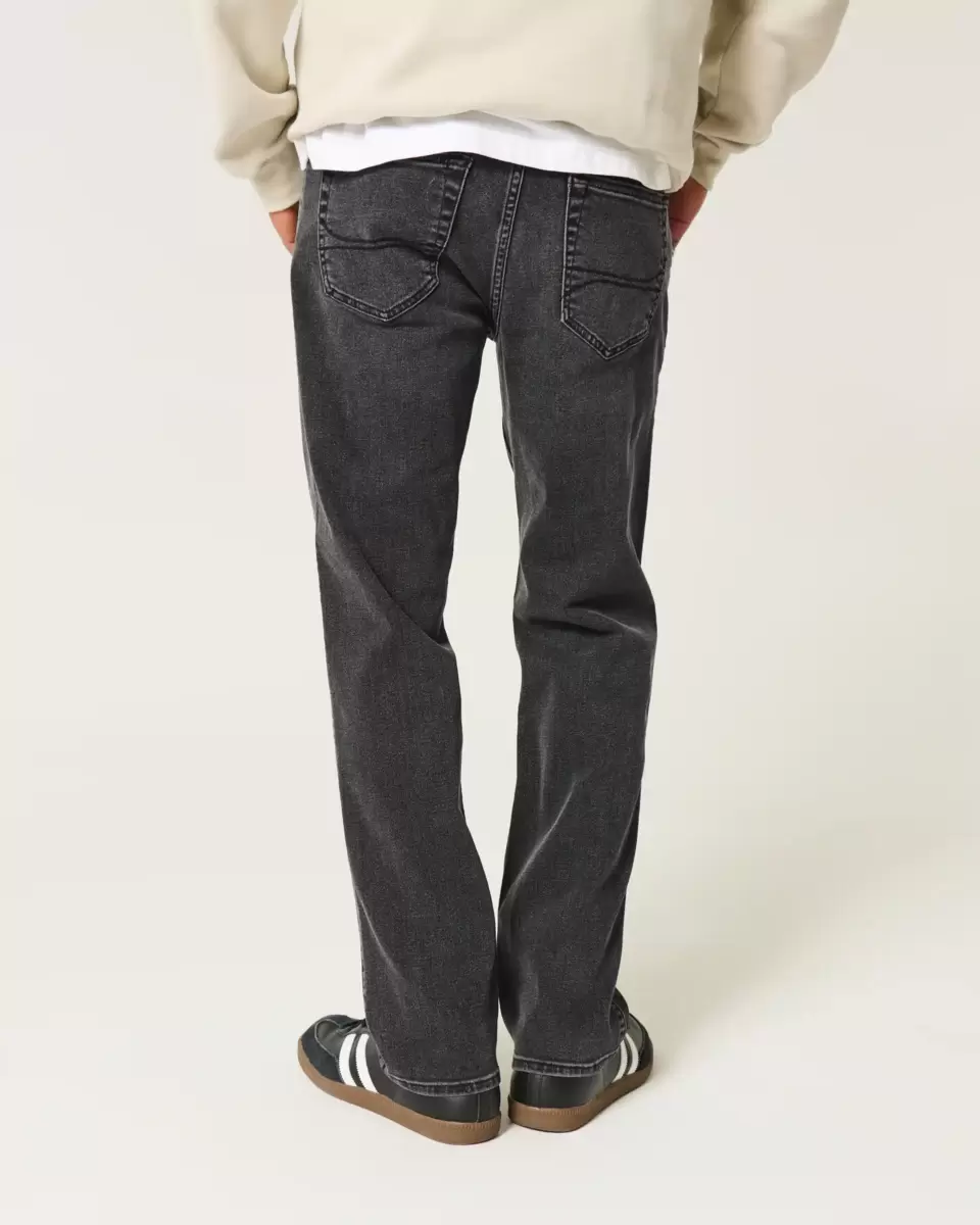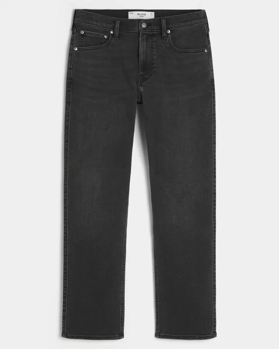 Wygodne jeansy w kolorze spranej czerni, z prostą nogawką. Subtelne przetarcia i przetarcia, elastyczne. Importowane.
