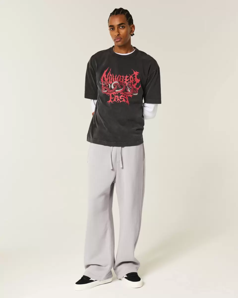 Wygodne, polarowe spodnie dresowe z bardzo luźnymi nogawkami i ściągaczem w pasie. Nadruk „Love Always Los Angeles” na tylnej kieszeni, kieszeniach przednich i prawej kieszeni zapinanej na zamek. Importowane.